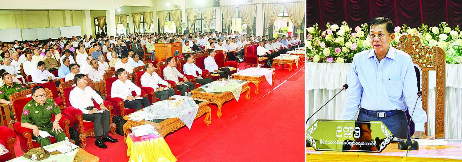 နိုင်ငံတော်အစိုးရအနေဖြင့် နိုင်ငံတော်ကို ဘက်စုံဖွံ့ဖြိုးတိုးတက်စေရေးအတွက် အင်တိုက် အားတိုက်ဖြင့် ကြိုးပမ်းဆောင်ရွက်လျက်ရှိပြီး တိုင်းဒေသကြီးနှင့် ပြည်နယ်များအနေဖြင့်လည်း မိမိတို့ဒေသအလိုက် ဖွံ့ဖြိုးတိုးတက်ရေးကို တတ်စွမ်းသရွေ့ ကြိုးပမ်းဆောင်ရွက်ရန်လိုကြောင်း၊ ဒေသတွင်ရှိသည့် အုပ်ချုပ်ရေးအဖွဲ့အစည်းများ၊ မြို့မိမြို့ဖများ၊ ဒေသခံများအားလုံး တက်ညီလက်ညီဖြင့် ဝိုင်းဝန်းကြိုးပမ်းကြမည်ဆိုပါက ဒေသအလိုက် ဖွံ့ဖြိုးတိုးတက်လာမည်ဖြစ်ပြီး ထိုမှတစ်ဆင့် တစ်နိုင်ငံလုံး အတိုင်းအတာဖြင့် ဖွံ့ဖြိုးတိုးတက်လာမည်ဖြစ်သည့်အတွက် အားလုံးက ဝိုင်းဝန်းဆောင်ရွက်ပေးကြစေလိုကြောင်း ပြောကြားသည်။