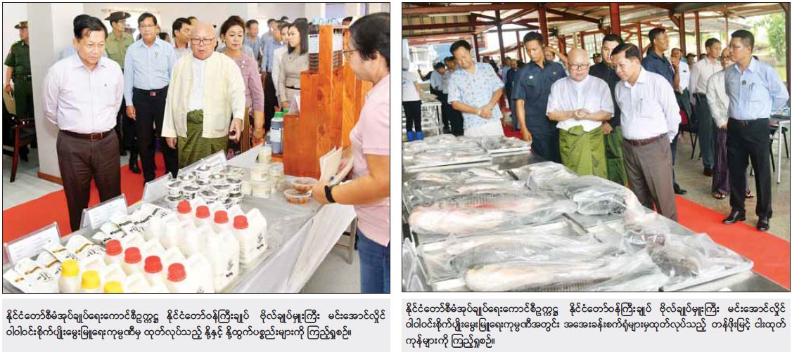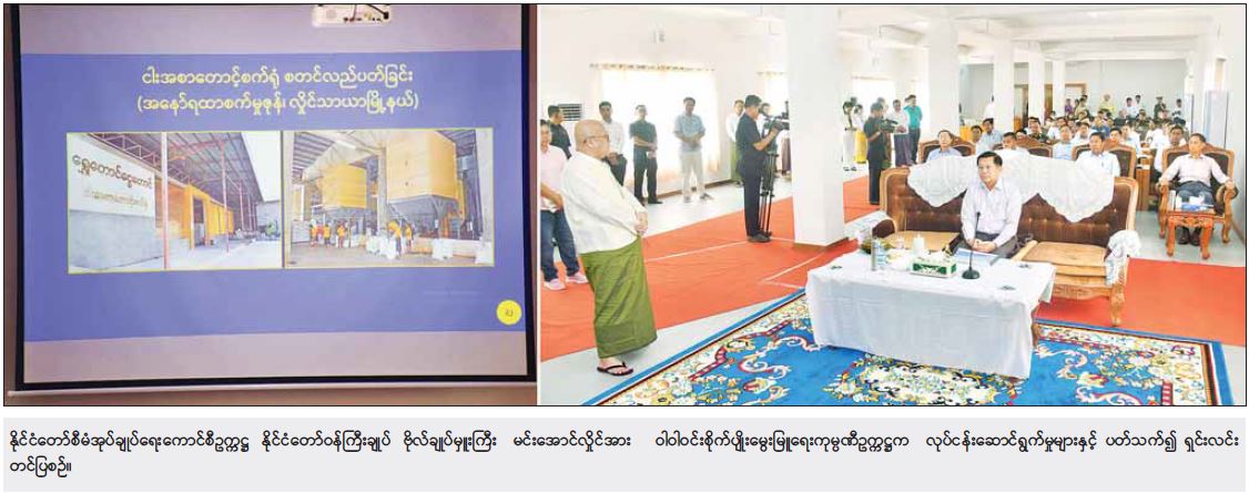 ထို့နောက် နိုင်ငံတော်စီမံအုပ်ချုပ်ရေးကောင်စီဥက္ကဋ္ဌ နိုင်ငံတော်ဝန်ကြီးချုပ်နှင့် အဖွဲ့ဝင်များသည် ကုမ္ပဏီမှ ထုတ်လုပ်ထားသည့် ပစ္စည်းများ ခင်းကျင်းပြသထားမှုများကို လိုက်လံကြည့်ရှုပြီး တာဝန်ရှိသူများ၏ တင်ပြချက်များအပေါ် သိရှိလိုသည်များပြန်လည် မေးမြန်းဆွေးနွေး ပြောကြားသည်။