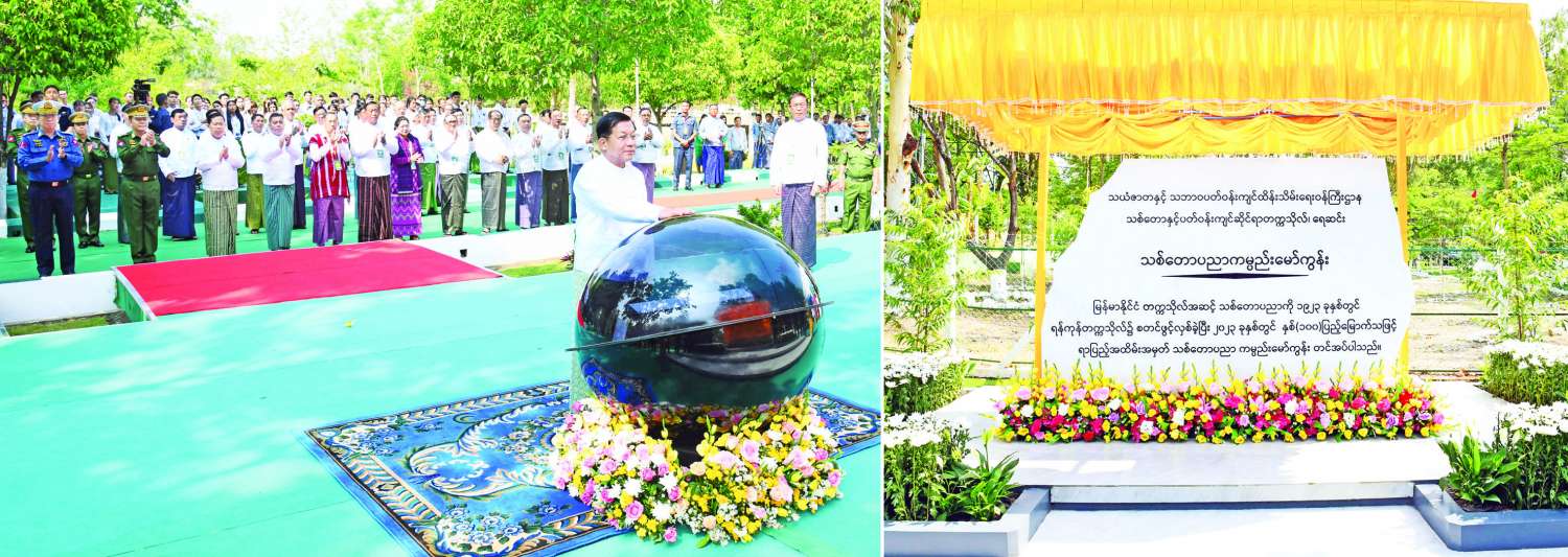 ယင်းနောက် နိုင်ငံတော်စီမံအုပ်ချုပ်ရေးကောင်စီဥက္ကဋ္ဌ နိုင်ငံတော်ဝန်ကြီးချုပ်ဗိုလ်ချုပ်မှူးကြီးမင်းအောင်လှိုင်က သစ်တောပညာ နှစ်(၁၀၀) ရာပြည့်အထိမ်းအမှတ်ကမ္ပည်းမော်ကွန်းအား စက်ခလုတ်နှိပ်ဖွင့်လှစ်ပေးပြီး အမွှေးနံ့သာရည်ဖြင့် ပက်ဖျန်းပေးသည်။