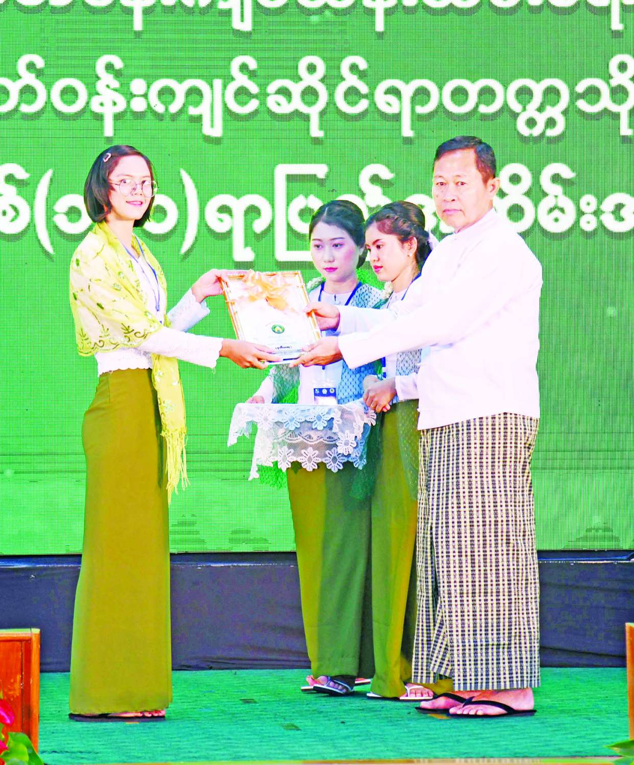 ယင်းနောက် နိုင်ငံတော်စီမံအုပ်ချုပ်ရေးကောင်စီဥက္ကဋ္ဌနိုင်ငံတော်ဝန်ကြီးချုပ်က ဖျော်ဖြေတင်ဆက်ခဲ့သည့်အနုပညာရှင်များနှင့် ကျောင်းသားကျောင်းသူများကို ဂုဏ်ပြုပန်းခြင်းပေးအပ်သည်။