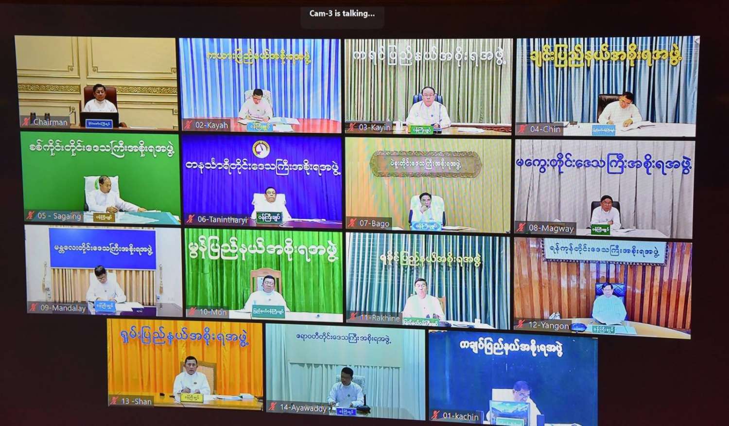 အစည်းအဝေးသို့ နိုင်ငံတော်စီမံအုပ်ချုပ်ရေး ကောင်စီအဖွဲ့ဝင်များဖြစ်ကြသည့် ဗိုလ်ချုပ်ကြီး တင်အောင်စန်းနှင့် ဒုတိယဗိုလ်ချုပ်ကြီး မိုးမြင့်ထွန်း၊ ပြည်ထောင်စုဝန်ကြီးများဖြစ်ကြသည့် ဦးမောင်မောင်အုန်း၊ ဦးမင်းနောင်၊ နေပြည်တော်ကောင်စီဥက္ကဋ္ဌ ဦးတင်ဦးလွင်၊ ကာကွယ်ရေးဦးစီးချုပ်ရုံးမှ တပ်မတော်အရာရှိကြီးများ၊ ဒုတိယဝန်ကြီးများနှင့် တာဝန်ရှိသူများ တက်ရောက်ကြပြီး တိုင်းဒေသကြီးနှင့် ပြည်နယ်ဝန်ကြီးချုပ်များက Video Conferencing ဖြင့် တက်ရောက်ကြသည်။