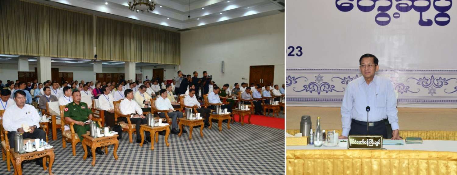 ဆီထွက်သီးနှံများဖြစ်သည့် မြေပဲနှင့်နှမ်းများကို ပြည်ပသို့တင်ပို့ခြင်းထက် ပြည်တွင်း ၌ဆီထုတ်လုပ်ခြင်း လုပ်ငန်းများကိုဆောင်ရွက်မည်ဆိုပါက ဆီစက်များလည်ပတ်ရခြင်း၊ တိရစ္ဆာန်အစာအတွက်လိုအပ်သည့် နှမ်းဖတ်၊ ပဲဖတ်များရရှိခြင်း၊ အလုပ်အကိုင် များရရှိခြင်းများဖြစ်ပေါ်ပြီး ပြည်တွင်းဆီဖူလုံမှုကို များစွာအထောက် အကူပြုစေမည် ဖြစ်ကြောင်း၊ အလားတူ အခြားသယ်ယူပို့ဆောင်ခြင်းနှင့် ဝန်ဆောင်မှုလုပ်ငန်းများကိုလည်း လည်ပတ်ဆောင်ရွက်နိုင်မည်ဖြစ်ကြောင်း၊ စိုက်ပျိုးမွေးမြူရေးကဏ္ဍမှ စတင်လိုက်သည့် ထုတ်လုပ်မှုသည် စက်မှုလုပ်ငန်းနှင့် ဝန်ဆောင်မှုလုပ်ငန်းများကို များစွာ ပြောင်းလဲသွားစေနိုင်သည့်အတွက် မိမိတို့နိုင်ငံနှင့်ကိုက်ညီပြီး အခြေခံအကျဆုံးဖြစ်သည့် စိုက်ပျိုးမွေးမြူရေးလုပ်ငန်းများကို အောင်မြင်အောင်ဆောင်ရွက်ကြစေလိုကြောင်း၊ ပြည်ပသို့ လယ်ယာထွက်ကုန်များ တင်ပို့ခြင်းနှင့် ပတ်သက်၍ စနစ်တကျဖြင့် စဉ်းစားသုံးသပ် ဆောင်ရွက်ကြစေလိုကြောင်း၊ နိုင်ငံအတွက် အကျိုးဖြစ်ထွန်းနိုင်သည့် အခြေအနေများကို စဉ်းစားသုံးသပ်ဆောင်ရွက်ကြစေလိုကြောင်း၊ ယနေ့တွေ့ဆုံပွဲသို့ တက်ရောက်လာကြသူများသည် နိုင်ငံ့စီးပွားမြှင့်တင်ရေးအတွက် အဓိကတာဝန်အရှိဆုံးပုဂ္ဂိုလ်များဖြစ်ကြပြီး ကဏ္ဍပေါင်းစုံမှ တင်ပြချက်များသည် နိုင်ငံ့စီးပွားမြှင့်တင်ရေးအတွက် ဆောင်ရွက်ရန် စဉ်းစားဆောင်ရွက်နိုင်မည့် အဖြေများရရှိ မည်ဟုမျှော်လင့်ပါကြောင်းနှင့် နိုင်ငံ့စီးပွားမြှင့်တင်ရေးနှင့် နိုင်ငံတော်၏ ကောင်းရာ ကောင်းကျိုးအတွက် အလေးထား ဆွေးနွေးကြစေလိုကြောင်း ပြောကြားသည်။