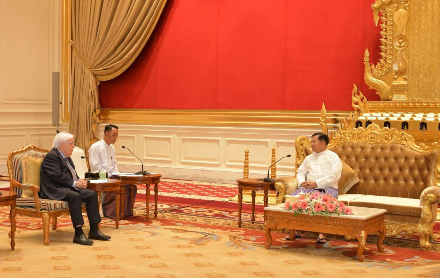 နိုင်ငံတော်စီမံအုပ်ချုပ်ရေးကောင်စီဥက္ကဋ္ဌ နိုင်ငံတော်ဝန်ကြီးချုပ် ဗိုလ်ချုပ်မှူးကြီး မင်းအောင်လှိုင်ထံ ကုလသမဂ္ဂလူသားချင်းစာနာထောက်ထားမှုဆိုင်ရာနှင့် အရေးပေါ်ကယ်ဆယ်ရေးဆိုင်ရာ ညှိနှိုင်းရေးမှူးနှင့် ကုလသမဂ္ဂလူသားချင်း စာနာထောက်ထားမှုဆိုင်ရာညှိနှိုင်းရေးရုံး (UNOCHA) ၏အကြီးအကဲဖြစ်သူ Under Secretary  General Mr. Martin Griffiths   ဦးဆောင်သော ကိုယ်စားလှယ်အဖွဲ့က ယနေ့မွန်းလွဲပိုင်းတွင် နေပြည်တော်ရှိ နိုင်ငံတော်စီမံအုပ်ချုပ်ရေးကောင်စီဥက္ကဋ္ဌရုံး၊ သံတမန်ဆောင်ဧည့်ခန်းမ၌ လာရောက်တွေ့ဆုံသည်။