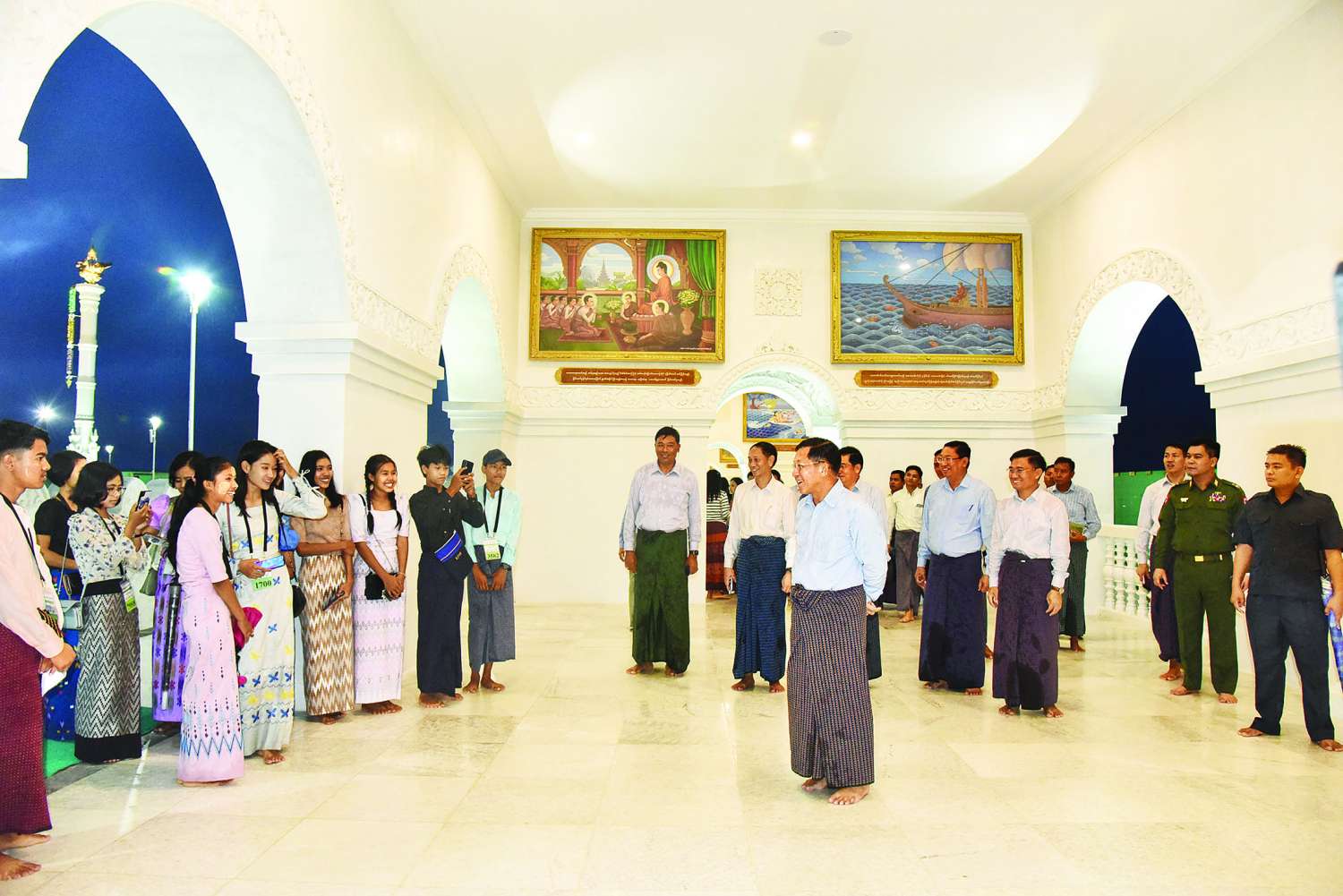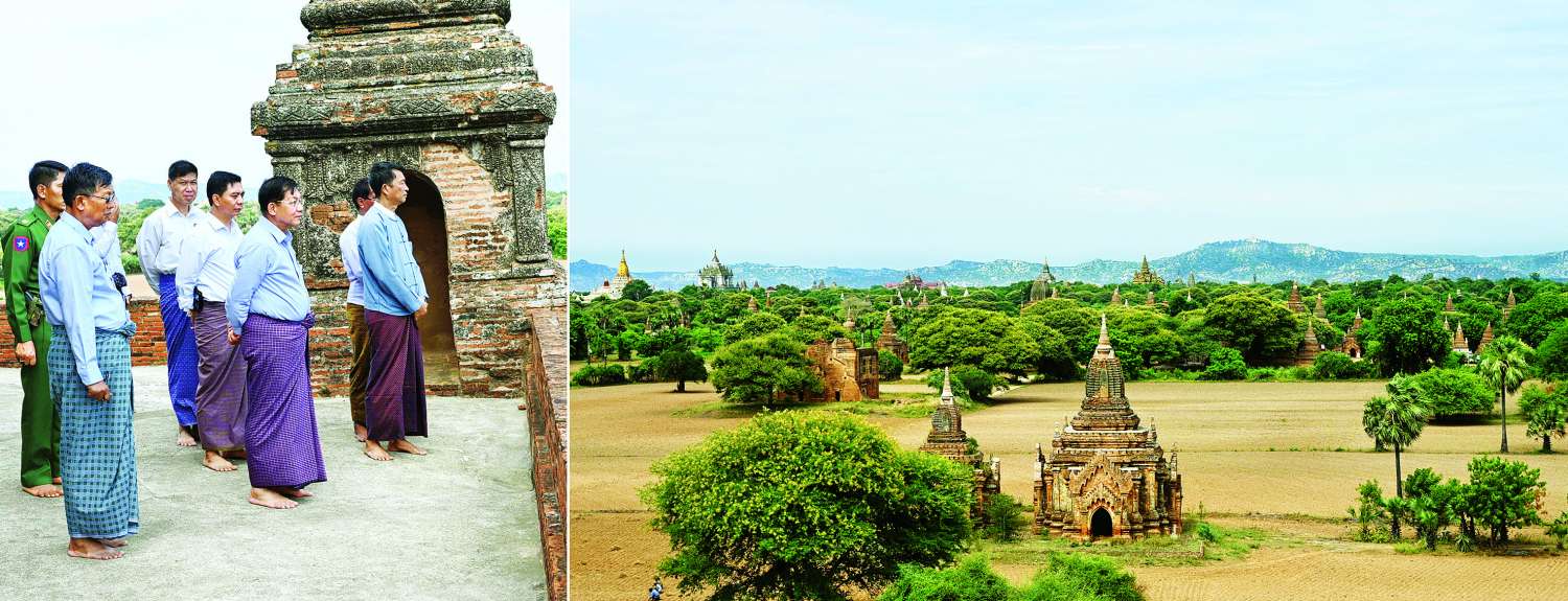 နိုင်ငံတော်စီမံအုပ်ချုပ်ရေးကောင်စီဥက္ကဋ္ဌ နိုင်ငံတော်ဝန်ကြီးချုပ် ဗိုလ်ချုပ်မှူးကြီး မင်းအောင်လှိုင်သည် ယနေ့နံနက်ပိုင်းတွင် ဇနီး ဒေါ်ကြူကြူလှ၊ ကောင်စီတွဲဖက်အတွင်းရေးမှူး ဒုတိယဗိုလ်ချုပ်ကြီး ရဲဝင်းဦးနှင့်ဇနီး၊ ပြည်ထောင်စုဝန်ကြီးများ၊ မန္တလေးတိုင်းဒေသကြီး ဝန်ကြီးချုပ် ဦးမျိုးအောင်၊ ညှိနှိုင်းကွပ်ကဲရေးမှူး (ကြည်း၊ရေ၊လေ)နှင့်ဇနီး၊ ကာကွယ်ရေးဦးစီးချုပ်ရုံးမှ အဆင့်မြင့်တပ်မတော်အရာရှိကြီးများနှင့် ဇနီးများ၊ တာဝန်ရှိသူများလိုက်ပါ၍ သဘာဝဘေးအန္တရာယ်ဖြစ်ပေါ်မှုကြောင့် ရေဝင်၊ ရေဝပ်မှုနှင့် ထိခိုက်ပျက်စီးမှုများဖြစ်ပေါ်ခဲ့သည့် ပုဂံရှေးဟောင်းယဉ်ကျေးမှုနယ်မြေအတွင်း ပြုပြင်ထိန်းသိမ်းထားရှိမှုအခြေအနေများကို သွားရောက်ကြည့်ရှုစစ်ဆေးပြီး လိုအပ်သည်များ လမ်းညွှန်မှာကြားသည်။