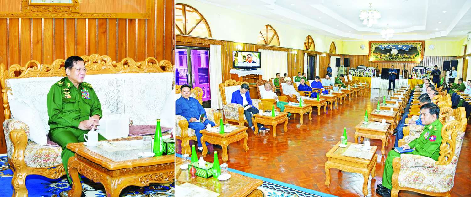 နိုင်ငံတော်စီမံအုပ်ချုပ်ရေးကောင်စီဥက္ကဋ္ဌ တပ်မတော်ကာကွယ်ရေးဦးစီးချုပ် ဗိုလ်ချုပ်မှူးကြီး မင်းအောင်လှိုင် သည် ယနေ့နံနက်ပိုင်းတွင် ရှမ်းပြည်နယ် (မြောက်ပိုင်း)အတွင်းရှိ ပြည်သူ့စစ်ဌာနေတပ်ဖွဲ့ဝင်များအား အရှေ့မြောက်တိုင်းစစ်ဌာနချုပ်၊ ရွှေလီရတနာခန်းမ၌ တွေ့ဆုံသည်။