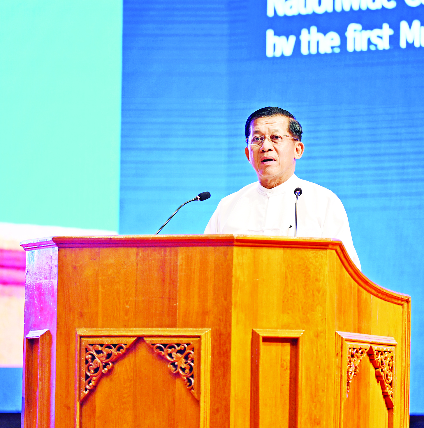 ကျွန်တော်တို့ နိုင်ငံတော်စီမံအုပ်ချုပ်ရေးကောင်စီအစိုးရအနေနဲ့ နိုင်ငံတော်နဲ့ တိုင်းရင်းသားပြည်သူတွေအားလုံးရဲ့ ငြိမ်းချမ်းသာယာဝပြောတဲ့ အနာဂတ်၊ ကောင်းမွန်တဲ့ပစ္စုပ္ပန်ကို တည်ဆောက်လျက်ရှိပါတယ်။ ကျွန်တော်တို့နိုင်ငံနဲ့ ပြည်သူပြည်သားအားလုံးအတွက် အမျိုးသားရေးရည်မှန်းချက်အဖြစ် တိုင်းပြည်သာယာဝပြောရေးနဲ့ စားရေရိက္ခာဖူလုံရေးကို ဆောင်ရွက်နေပါတယ်။ နိုင်ငံရေးရည်မှန်းချက်အနေနဲ့ စစ်မှန်၍စည်းကမ်းပြည့်ဝသော ပါတီစုံဒီမိုကရေစီစနစ် ခိုင်မာရေးနဲ့ ဒီမိုကရေစီနဲ့ ဖက်ဒရယ်စနစ်ကိုအခြေခံတဲ့ ပြည်ထောင်စုတည်ဆောက်ရေးဆောင်ရွက်ပါမယ်။ ဒီနှစ်ချက်ဟာ ကျွန်တော်တို့အတွက် အဂ္ဂမဟာဗျူဟာ (Grand Strategy) ပါပဲ။ လက်ရှိအချိန်မှာကော နောင်အနာဂတ်မှာပါ ရေရှည်ရည်မှန်းချက်အဖြစ် စဉ်ဆက်မပြတ်တိုးတက်ခိုင်မာအောင် ဆောင်ရွက်သွားကြရမှာ ဖြစ်ပါတယ်။ ဒီအချက်တွေဆောင်ရွက်နိုင်ဖို့အတွက် ကျွန်တော်တို့အစိုးရအနေနဲ့ ရှေ့လုပ်ငန်းစဉ်(၅)ရပ်ကို ချမှတ်ဆောင်ရွက်လျက်ရှိပါတယ်။ ဒါဟာကျွန်တော်တို့ရဲ့ မဟာဗျူဟာ (Strategy) ပါပဲ။ ဒီအဂ္ဂမဟာဗျူဟာနဲ့ မဟာဗျူဟာတွေ အောင်မြင်စေဖို့၊ ခိုင်မာစေဖို့ လက်ရှိကျွန်တော်တို့ လုပ်ဆောင်နေတာက ဦးတည်ချက် (၉) ချက်ပါပဲ။ ဒါဟာ ကျွန်တော်တို့ရဲ့ နည်းဗျူဟာ (Tactic) ပဲ ဖြစ်ပါတယ်။