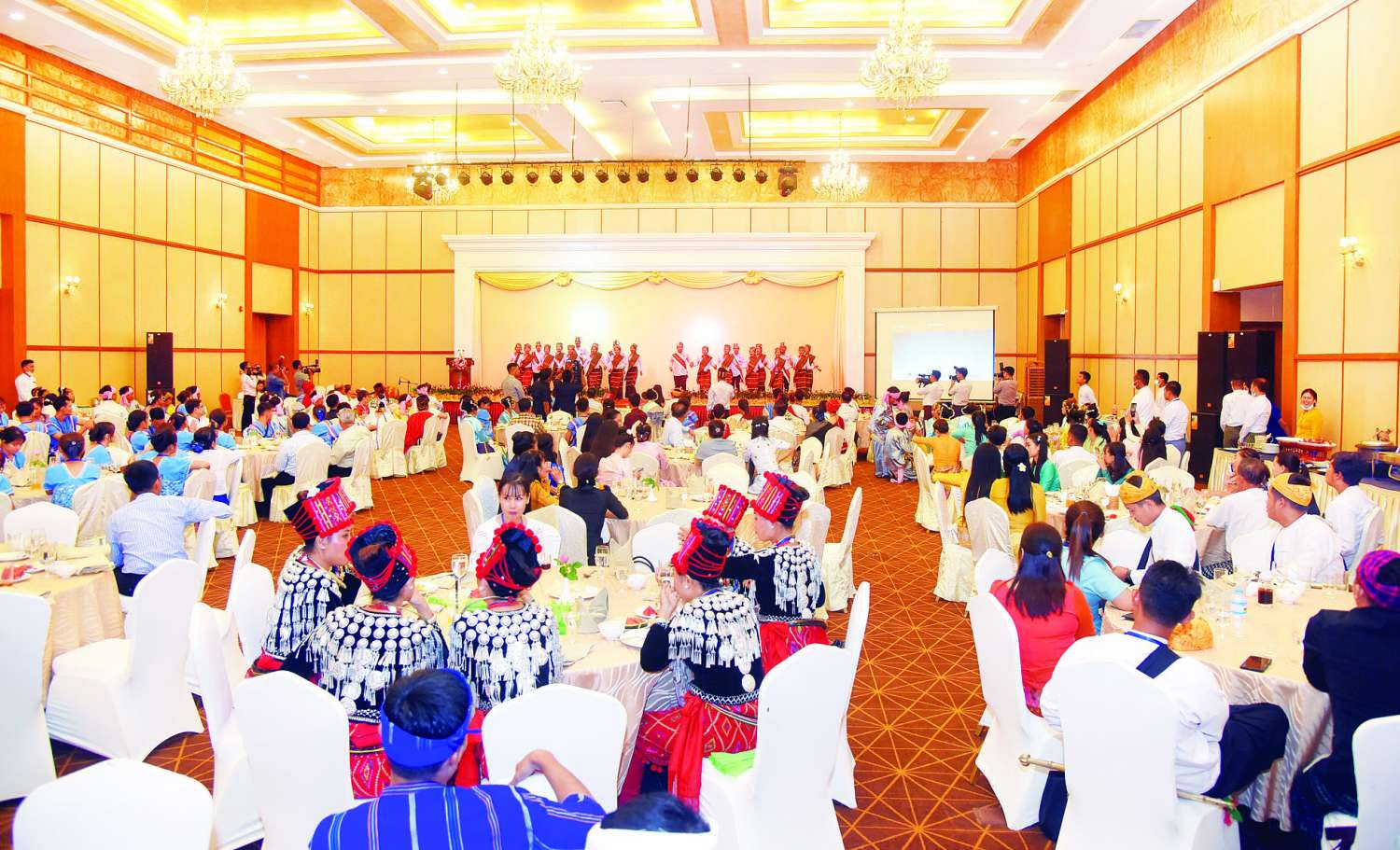ညပိုင်းတွင် ယဉ်ကျေးမှုအကအဖွဲ့နှင့် တိုင်းရင်းသားရိုးရာယဉ်ကျေးမှုအကအဖွဲ့များသည် ယနေ့တွင် ပြုလုပ်ခဲ့သည့် တစ်နိုင်ငံလုံးပစ်ခတ်တိုက်ခိုက်မှုရပ်စဲရေး သဘောတူစာချုပ်(NCA) (၈) နှစ်မြောက် နှစ်ပတ်လည်နေ့အခမ်းအနားတွင် ရိုးရာယဉ်ကျေးမှုအကများဖြင့် အနုသုခုမပညာမြောက်စွာ တင်ဆက်ဖျော်ဖြေနိုင်ခဲ့မှုကို ဂုဏ်ပြုသောအားဖြင့် နိုင်ငံတော်စီမံအုပ်ချုပ်ရေးကောင်စီဥက္ကဋ္ဌ နိုင်ငံတော်ဝန်ကြီးချုပ် ဗိုလ်ချုပ်မှူးကြီး မင်းအောင်လှိုင်က Hotel Max ၌ စီစဉ်ချီးမြှင့်ဆောင်ရွက်ပေးသည့် ညစာစားပွဲသို့ တက်ရောက်ကြပြီး သာသနာရေးနှင့်ယဉ်ကျေးမှုဝန်ကြီးဌာန ပြည်ထောင်စုဝန်ကြီး ဦးတင်ဦးလွင်၊ တိုင်းရင်းသား​လူမျိုးများရေးရာဝန်ကြီးဌာန ပြည်​ထောင်စုဝန်ကြီး Jeng Phang ​နော်​တောင် ၊ ဒုတိယဝန်ကြီးများနှင့် တာဝန်ရှိသူများနှင့်အတူ ဂုဏ်ပြုညစာကို အတူတကွ ရင်းနှီးစွာ သုံးဆောင်ခဲ့ကြသည်။