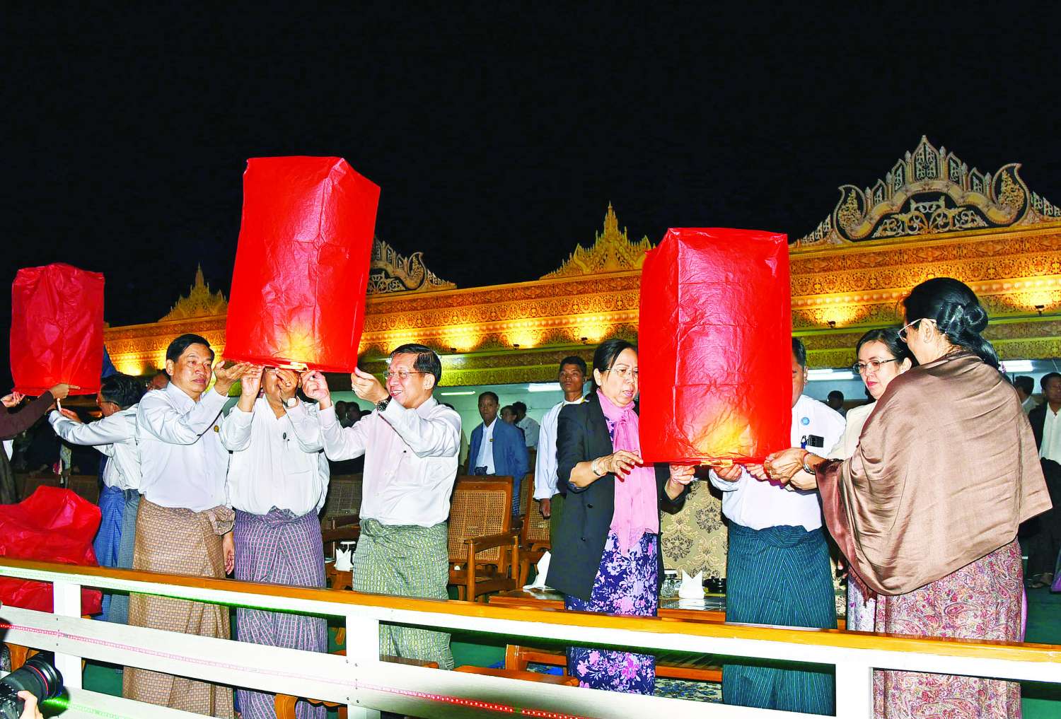 မီးပုံးပျံများလွှတ်တင်မှုအပြီးတွင် နိုင်ငံတော်စီမံအုပ်ချုပ်ရေးကောင်စီဥက္ကဋ္ဌ နိုင်ငံတော်ဝန်ကြီးချုပ်နှင့် ဇနီး၊ အခမ်းအနားတက်ရောက်လာကြသူများသည် မီးပုံးပျံငယ်များ လွှတ်တင်ပူဇော်ခဲ့ကြသည်။