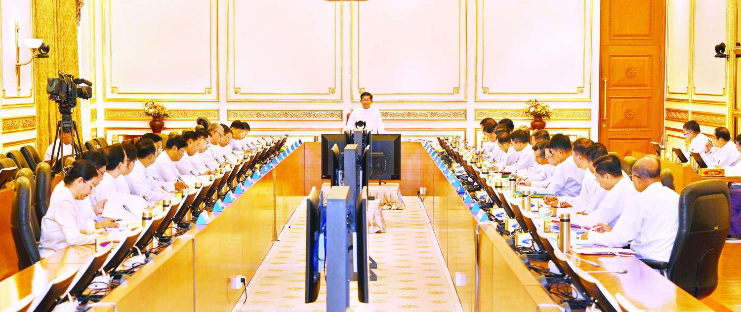 ပြည်ထောင်စုအစိုးရအဖွဲ့အစည်းအဝေး အမှတ်စဉ် (၇/၂၀၂၃) ကို ယနေ့နံနက်ပိုင်းတွင် နေပြည်တော်ရှိ နိုင်ငံတော်စီမံအုပ်ချုပ်ရေးကောင်စီဥက္ကဋ္ဌရုံး အစည်းအဝေးခန်းမ၌ ကျင်းပရာ နိုင်ငံတော်စီမံအုပ်ချုပ်ရေးကောင်စီဥက္ကဋ္ဌ နိုင်ငံတော်ဝန်ကြီးချုပ် ဗိုလ်ချုပ်မှူးကြီး မင်းအောင်လှိုင် တက်ရောက်အမှာစကား ပြောကြားသည်။