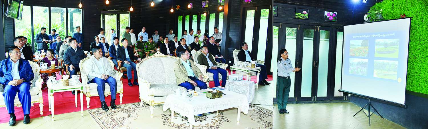 ဦးစွာ ဥယျာဉ်ရှင်းလင်းဆောင်ခန်းမတွင် သစ်တောဦးစီးဌာန ညွှန်ကြားရေးမှူးချုပ် ဒေါက်တာသောင်းနိုင်ဦးက အမျိုးသားကန်တော်ကြီးဥယျာဉ် တည်နေရာနှင့် သမိုင်းကြောင်းများ၊ နိုင်ငံတော်အကြီးအကဲမှ လာရောက်စစ်ဆေးစဉ် လမ်းညွှန်ချက်များအပေါ် လိုက်နာဆောင်ရွက် ပြီးစီးမှုများ၊ ကန်တော်ကြီးအတွင်းသို့ ရေဝင်ရောက်မှုအခြေအနေများ၊ ကျောက်စီရေမြောင်းများ ဆောက်လုပ်ထားရှိမှုနှင့် ကန်တော်ကြီးပတ်ဝန်းကျင် သာယာလှပသန့်ရှင်းမှုရှိစေရေး ဆောင်ရွက်ထားရှိမှုများ၊ ဘဲစားမြက်များစိုက်ပျိုးထားရှိမှုများ၊ သစ်ခွပန်းပင်များ၊ ပြင်ဦးလွင်ချယ်ရီနှင့် ဂျပန်ချယ်ရီများ စိုက်ပျိုးထားရှိမှု၊ ကန်တော်ကြီးအတွင်း အလှမွေးငါးများ စိုက်ထည့်မွေးမြူထားရှိမှုများကိုလည်းကောင်း၊ ကန်တော်ကြီးဥယျာဉ် တာဝန်ခံကုမ္ပဏီမှ အမှုဆောင်အရာရှိချုပ် ဦးရာဇာထွေးက အမျိုးသားကန်တော်ကြီး ဥယျာဉ် (၁၆) ကြိမ်မြောက် ပန်းပွဲတော်အား စည်ကားသိုက်မြိုက်စွာဖြင့် ကျင်းပပြုလုပ်နိုင်ရန် ပြင်ဆင်ဆောင်ရွက်ထားရှိမှုအခြေအနေများ၊ ပန်းပွဲတော်တွင် ပြည်တွင်းပန်းမျိုးများနှင့် ပြည်ပမျိုးများကို ဇုန်ရှစ်ဇုန်ခွဲ၍ ပြသသွားမည့်အခြေအနေများ၊ ဖျော်ဖြေရေးအစီအစဉ်များ ထည့်သွင်းကျင်းပသွားမည့် အခြေနေများကိုလည်းကောင်း၊ တိုင်းဒေသကြီးဝန်ကြီးချုပ် ဦးမျိုးအောင်က ပြင်ဦးလွင်မြို့ မြို့ပြဖွံ့ဖြိုးတိုးတက်ရေးအတွက် ဆောင်ရွက်ထားရှိမှု၊ ခရီးသွားမြို့တော်ဖြစ်စေရေး ကဏ္ဍအလိုက်ဆောင်ရွက်ထားရှိမှု၊ မြို့သန့်ရှင်း သာယာလှပရေး ဆောင်ရွက်လျက်ရှိမှု အခြေအနေများကိုလည်းကောင်း ရှင်းလင်းတင်ပြကြသည်။