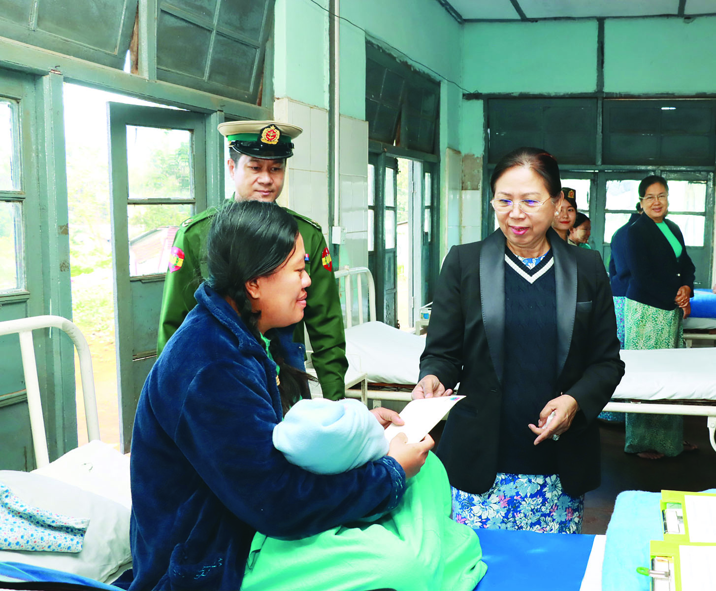 ထို့နောက် နိုင်ငံတော်စီမံအုပ်ချုပ်ရေးကောင်စီဥက္ကဋ္ဌ တပ်မတော်ကာကွယ်ရေးဦးစီးချုပ်၏ ဇနီးဒေါ်ကြူကြူလှနှင့် အဖွဲ့ဝင်များသည် သားဖွားမီးယပ်နှင့် ကလေးကုသဆောင်၌ တက်ရောက်ကုသမှုခံယူလျက်ရှိသည့် တပ်မတော်သားမိသားစုဝင်များကို တစ်ဦးချင်းရင်းနှီးနွေးထွေး စွာဖြင့် လိုက်လံနှုတ်ဆက်အားပေး စကားပြောကြားပြီး လက်ဆောင်ပစ္စည်းများ ပေးအပ်ခဲ့ကြောင်း သတင်းရရှိသည်။