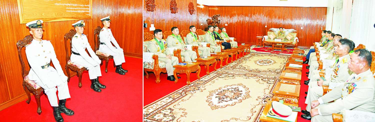 စစ်ရေးပြအခမ်းအနားအပြီးတွင် နိုင်ငံတော်စီမံအုပ်ချုပ်ရေးကောင်စီဥက္ကဋ္ဌ တပ်မတော်ကာကွယ်ရေး ဦးစီးချုပ်ဗိုလ်ချုပ်မှူးကြီး သတိုးမဟာသရေစည်သူ သတိုးသီရိသုဓမ္မမင်းအောင်လှိုင်သည် တပ်မတော်နည်းပညာတက္ကသိုလ်ကျောင်းဌာနချုပ်ဧည့်ခန်းမ၌ ထူးချွန်ဆုရရှိကြသည့် ဗိုလ်လောင်းသုံးဦးကိုတွေ့ဆုံ၍ ဂုဏ်ပြုအမှာစကားပြောကြားသည်။
