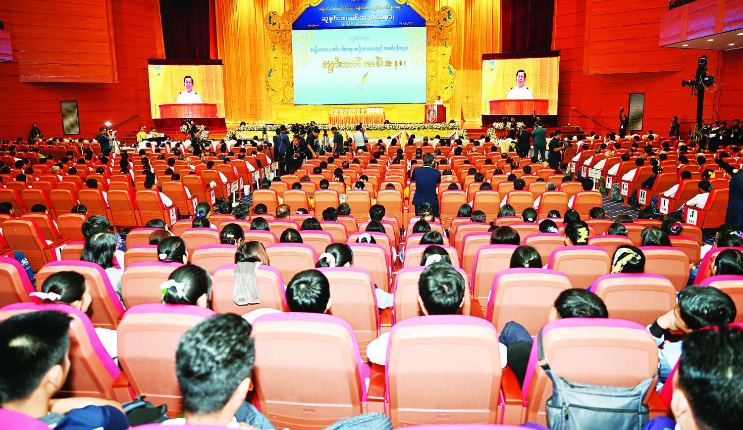 အခမ်းအနားသို့ နိုင်ငံတော်စီမံအုပ်ချုပ်ရေးကောင်စီဥက္ကဋ္ဌ နိုင်ငံတော်ဝန်ကြီးချုပ်နှင့်အတူဇနီး ဒေါ်ကြူကြူလှ၊ ကောင်စီတွဲဖက်အတွင်းရေးမှူးနှင့်ဇနီး၊ ကောင်စီဝင်များ နှင့်ဇနီးများ၊ ပြည်ထောင်စုဝန်ကြီးများနှင့်ဇနီးများ၊ ပြည်ထောင်စုအဆင့်ပုဂ္ဂိုလ်များနှင့်ဇနီးများ၊ တပ်မတော်အဆင့်မြင့် အရာရှိကြီးများနှင့်ဇနီးများ၊ နေပြည်တော်တိုင်းစစ်ဌာနချုပ်တိုင်းမှူး၊ ဒုတိယဝန်ကြီးများ၊ စာပေဆုစိစစ်ရွေးချယ်ရေးကော်မတီဝင် ဆရာကြီး၊ ဆရာမကြီးများ၊ ဆုရပုဂ္ဂိုလ်များ၊ စာပေပညာရှင်များ၊ အနုပညာရှင်များ၊ စာပေဝါသနာရှင်များနှင့် တာဝန်ရှိသူများ တက်ရောက်ကြသည်။