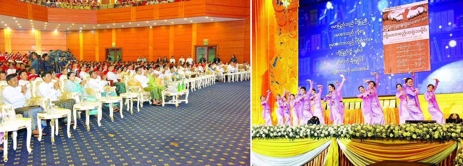 ယင်းနောက် မြန်မာ့အသံနှင့် ရုပ်မြင်သံကြား ဝန်ထမ်းများက စာပေဂုဏ်ပြုတေးသီချင်းဖြင့်သီဆို ကပြဖျော်ဖြေကြသည်။