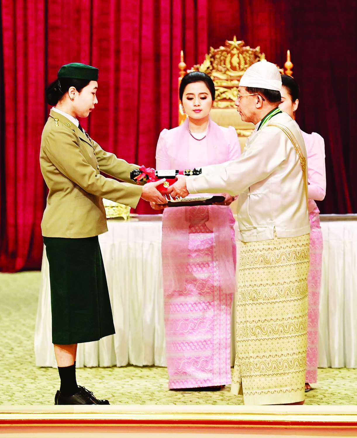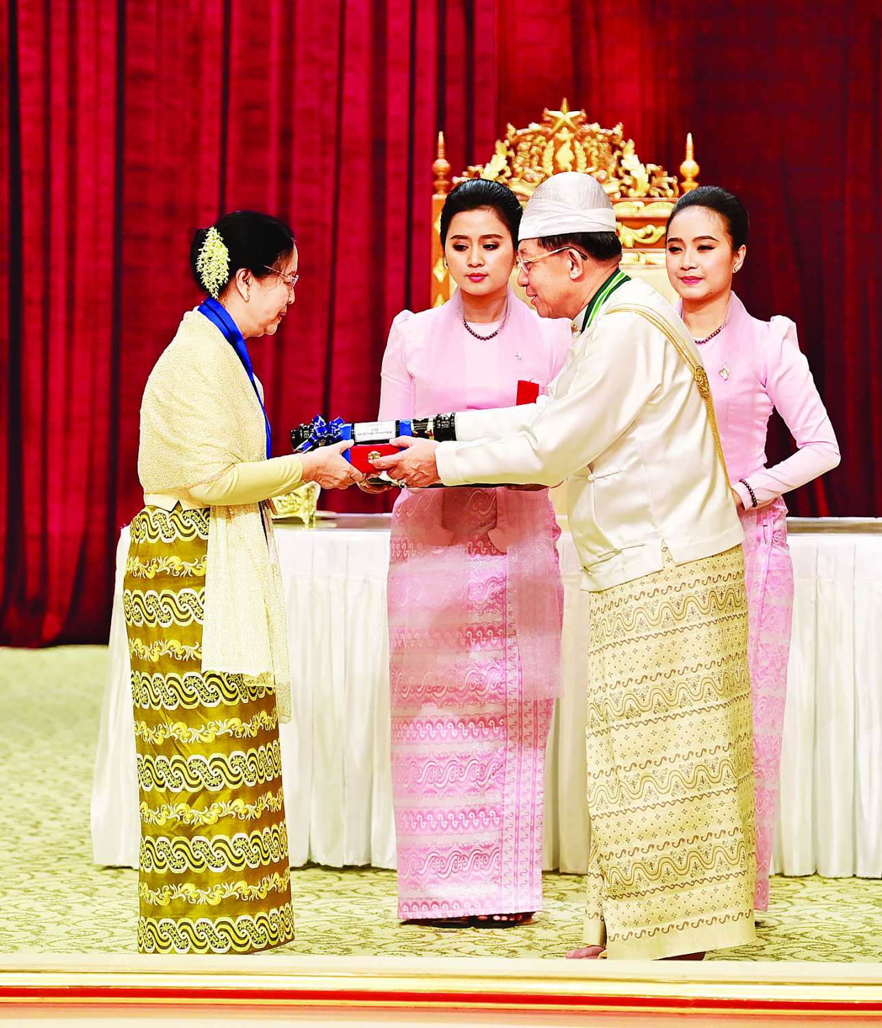 အခမ်းအနားသို့ နိုင်ငံတော်စီမံအုပ်ချုပ်ရေးကောင်စီဥက္ကဋ္ဌ နိုင်ငံတော်ဝန်ကြီးချုပ်၏ဇနီး ဒေါ်ကြူကြူလှ၊ နိုင်ငံတော်စီမံ အုပ်ချုပ်ရေးကောင်စီ ဒုတိယဥက္ကဋ္ဌ ဒုတိယဝန်ကြီးချုပ် ဒုတိယဗိုလ်ချုပ်မှူးကြီး သီရိပျံချီ မဟာသရေစည်သူ စိုးဝင်းနှင့်ဇနီး ဒေါ်သန်းသန်းနွယ်၊ ကောင်စီအတွင်းရေးမှူးနှင့်ဇနီး၊ တွဲဖက်အတွင်းရေးမှူးနှင့်ဇနီး၊ နိုင်ငံတော်စီမံအုပ်ချုပ်ရေး ကောင်စီဝင်များနှင့်ဇနီးများ၊ ပြည်ထောင်စုအဆင့် ပုဂ္ဂိုလ်များ၊ ပြည်ထောင်စုဝန်ကြီးများနှင့်ဇနီးများ၊ ကာကွယ်ရေးဦးစီးချုပ်ရုံးမှ အဆင့်မြင့် တပ်မတော်အရာရှိကြီးများ၊ ဂုဏ်ထူးဆောင်ဘွဲ့ ရရှိကြသည့် ပုဂ္ဂိုလ်များနှင့်မိသားစုဝင်များ တက်ရောက်ကြသည်။