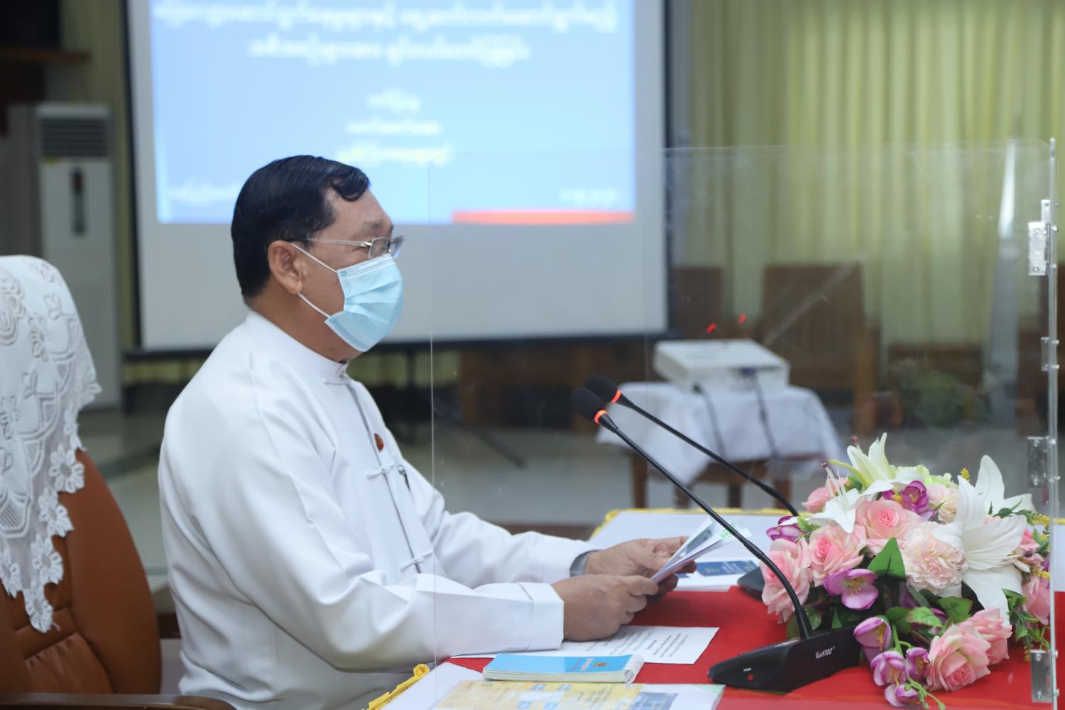အခမ်းအနားတွင် ပြည်ထောင်စုဝန်ကြီးဦးသိန်းဆွေက Coronavirus Disease (COVID-19) ရောဂါသည် ကမ္ဘာ့နိုင်ငံများတွင် ယခုအချိန်ထိ ရောဂါကူးစက်ပျံ့ပွားမှုမှာ ဆက်လက်ဖြစ်ပေါ်လျက် ရှိကြောင်း၊ အဆိုပါ ကိုဗစ်-၁၉ ကပ်ရောဂါကြောင့် လူသားများအပေါ် ကျန်းမာရေးသက်ရောက် မှုသာမက နိုင်ငံအတော်များများ၏ စီးပွားရေးအပေါ်တွင်လည်း ဝန်ထုတ်ဝန်ပိုးများ ဖြစ်ပေါ်စေခဲ့ပြီး ကမ္ဘာ့နိုင်ငံများအနေဖြင့် ကပ်ရောဂါကြောင့် စီးပွားရေးအပေါ် ဆိုးရွားသော သက်ရောက်မှုများအား တုံ့ပြန်ဆောင်ရွက်နိုင်မည့်မဟာဗျူဟာစီမံကိန်းများကို ရေးဆွဲချမှတ်ဆောင်ရွက်လျက်ရှိပါ ကြောင်း၊