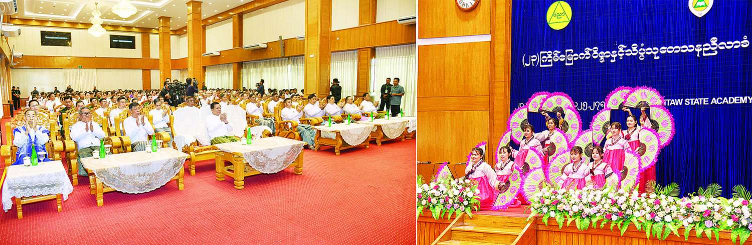 ယင်းနောက် အခမ်းအနားအစီအစဉ်ဒုတိယပိုင်းကို Naypyitaw State Academy စုပေါင်းခန်းမကြီး၌ ဆက်လက်ကျင်းပပြုလုပ်ပြီး ဦးစွာ ဝိဇ္ဇာနှင့်သိပ္ပံ သုတေသနညီလာခံသီချင်းဖြင့် ဖျော်ဖြေသည်။