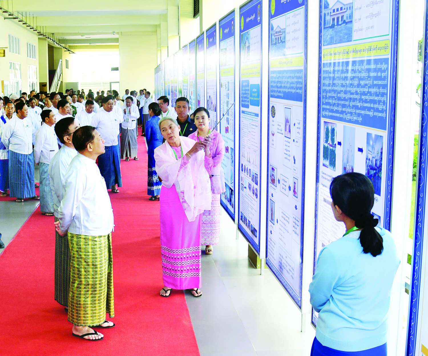 ထို့နောက် နိုင်ငံတော်စီမံအုပ်ချုပ်ရေးကောင်စီဥက္ကဋ္ဌ နိုင်ငံတော်ဝန်ကြီးချုပ်နှင့် အဖွဲ့ဝင်များသည် တက်ရောက်လာကြသူများနှင့်အတူ တက္ကသိုလ်များ၏ အချက်အလက်များနှင့် သုတေသနဆောင်ရွက်မှုတင်ပြခြင်းများအား ပြသထားသည့် တက္ကသိုလ်အသီးသီးမှ သုတေသနပိုစတာများနှင့် သုတေသနပြကွက်များကို ပြကွက်တစ်ခုချင်းစီအလိုက် စိတ်ပါ ဝင်စားစွာဖြင့် လိုက်လံကြည့်ရှုကြရာ ပြကွက်အလိုက် တာဝန်ရှိသူများက ရှင်းလင်းတင်ပြခဲ့ကြကြောင်း သတင်းရရှိသည်။