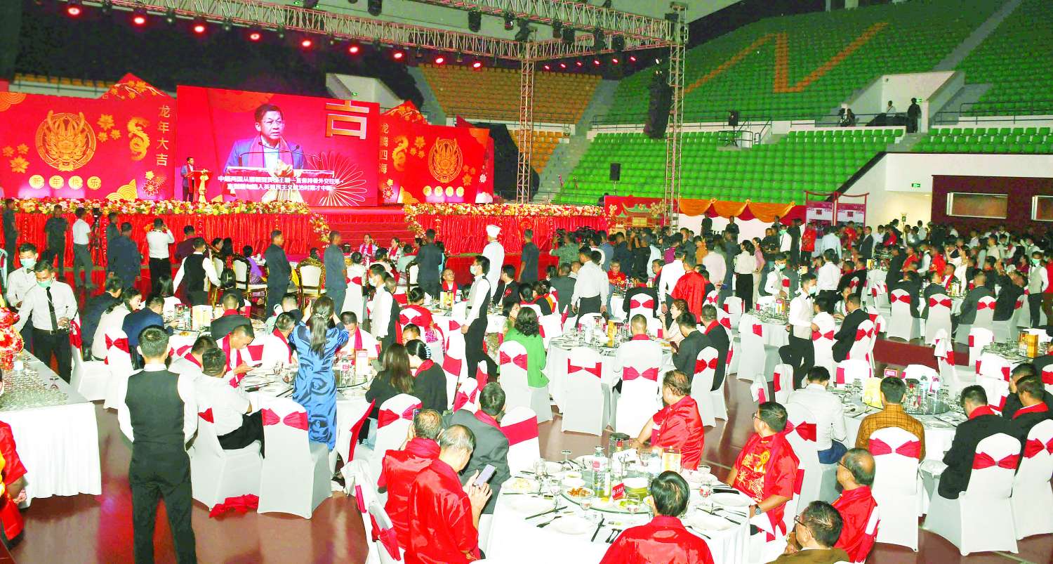 (၂၀၂၄) ခုနှစ် ရွှေနဂါးတရုတ်နှစ်သစ်ကူးပွဲတော်အခမ်းအနားကို ယနေ့ညနေပိုင်းတွင် ရန်ကုန်မြို့ရှိ အမျိုးသားအားကစားပြိုင်ပွဲရုံ (၁) သုဝဏ္ဏ၌ ကျင်းပပြုလုပ်ရာ နိုင်ငံတော်စီမံအုပ်ချုပ်ရေးကောင်စီဥက္ကဋ္ဌ နိုင်ငံတော်ဝန်ကြီးချုပ် ဗိုလ်ချုပ်မှူးကြီး မင်းအောင်လှိုင်နှင့် ဇနီး ဒေါ်ကြူကြူလှတို့ တက်ရောက်ချီးမြှင့်သည်။