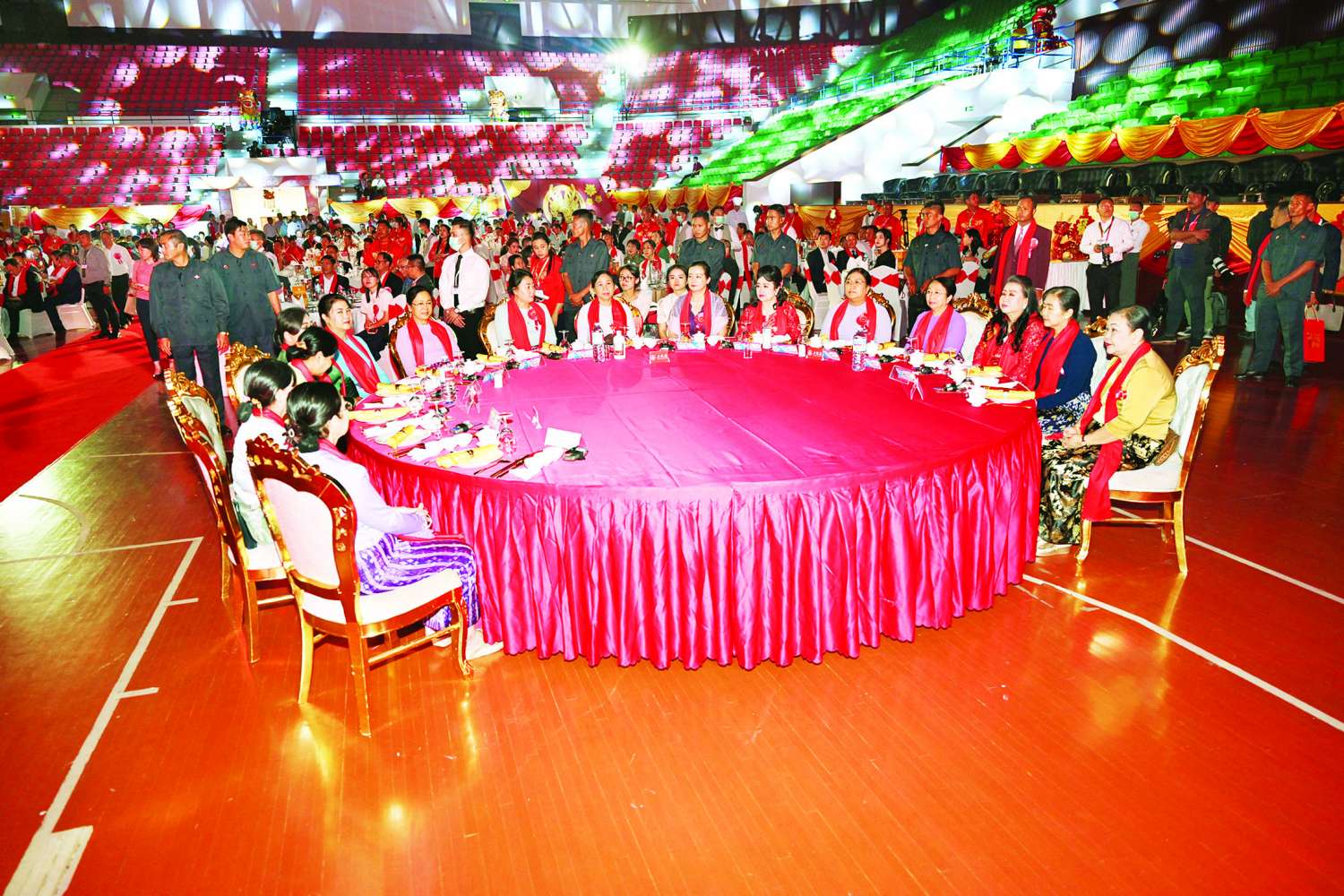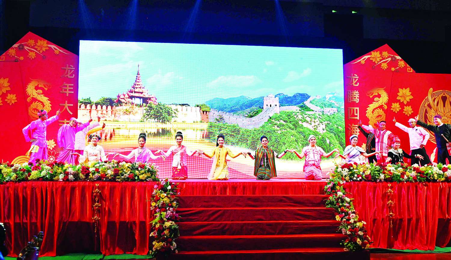ထို့နောက် နိုင်ငံတော်စီမံအုပ်ချုပ်ရေးကောင်စီဥက္ကဋ္ဌ နိုင်ငံတော်ဝန်ကြီးချုပ်နှင့်ဇနီးတို့သည် အခမ်းအနား တက်ရောက်လာကြသူများနှင့်အတူ တရုတ်ရိုးရာ နှစ်သစ်ကူးအထိမ်းအမှတ် ဂုဏ်ပြုညစာကို အတူတကွ သုံးဆောင်ကြသည်။ ညစာသုံးဆောင်နေစဉ်အတွင်း တရုတ်နိုင်ငံမှ အထူးလာရောက်ဖျော်ဖြေသည့် ထိန်ချုံးအမျိုးသားယဉ်ကျေးမှုအဖွဲ့၊ ချုံချင့်ယဉ်ကျေးမှုအဖွဲ့နှင့် တယ်ဟုန်စာပေနှင့် အနုပညာယဉ်ကျေးမှုအဖွဲ့တို့က ဗုံအက၊ မျက်နှာပြောင်းအကတို့အပါအဝင် တရုတ်ရိုးရာ တေးသီချင်းများ၊ သရုပ်ဖော်အကများဖြင့်လည်းကောင်း၊ ပြည်သူ့ဆက်ဆံရေးနှင့် စိတ်ဓာတ်စစ်ဆင်ရေးညွှန်ကြားရေးမှူးရုံးကွပ်ကဲမှုအောက် မြဝတီယဉ်ကျေးမှုအဖွဲ့နှင့် အနုပညာရှင်များက အဆိုအကများ တေးသရုပ်ဖော်များ၊ တရုတ် - မြန်မာ ချစ်ကြည်ရေး တေးသီချင်းများဖြင့်လည်းကောင်း သီဆိုကပြ ဖျော်ဖြေတင်ဆက်ကြသည်။