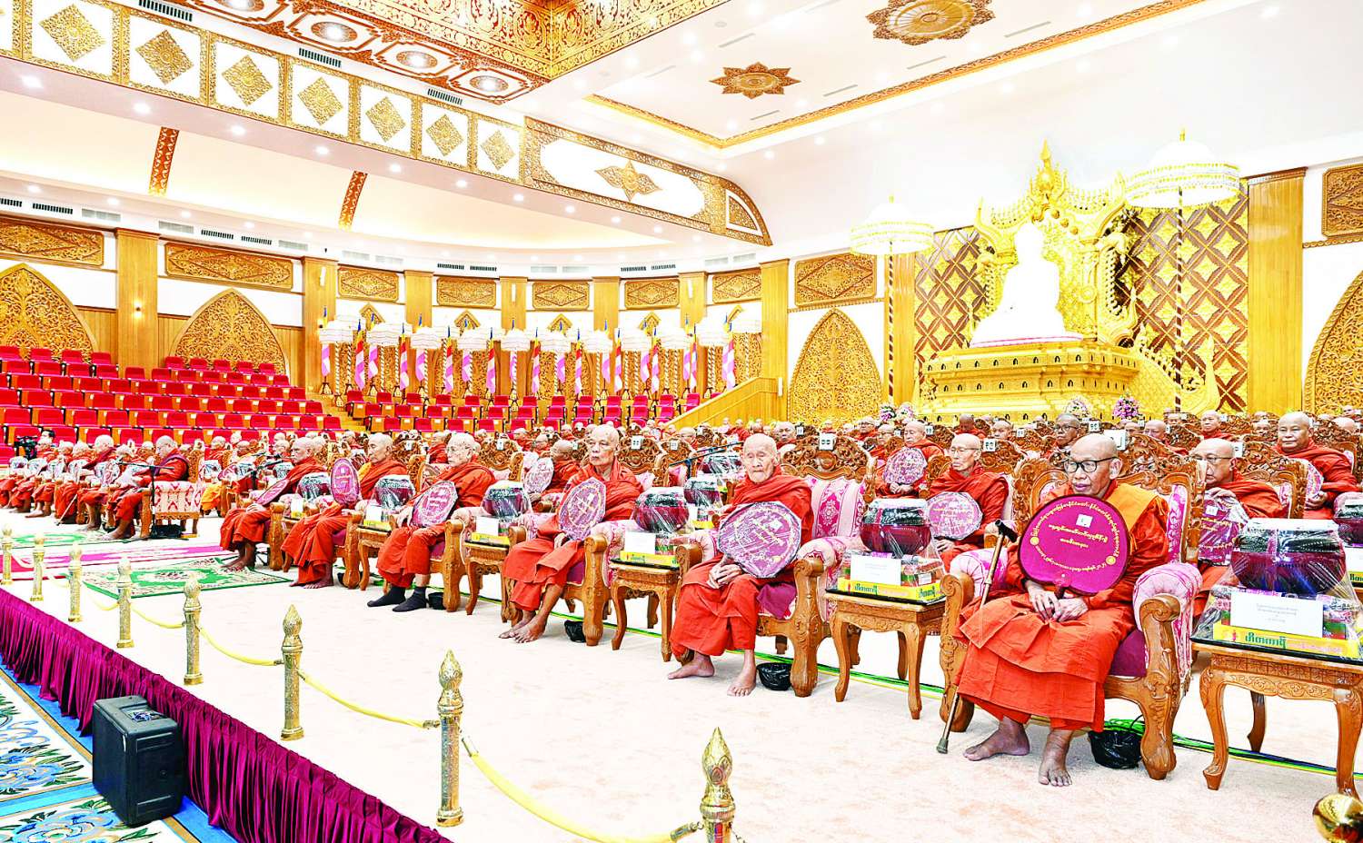 အခမ်းအနားသို့ အထူးပင့်ဖိတ်ထားသည့် နိုင်ငံတော်သံဃမဟာနာယကအဖွဲ့ဥက္ကဋ္ဌ အဂ္ဂမဟာပဏ္ဍိတ အဂ္ဂမဟာသဒ္ဒမ္မ ဇောတိကဓဇ သန်လျင်မင်းကျောင်း ဆရာတော် ဒေါက်တာ ဘဒ္ဒန္တစန္ဒိမာဘိဝံသနှင့် နိုင်ငံတော်သံဃမဟာနာယကအဖွဲ့ အကျိုးတော်ဆောင်၊ မန္တလေးမြို့၊ မစိုးရိမ်တိုက်သစ်မဟာနာယက၊ ဓမ္မသမိဒ္ဓိကျောင်းဆရာတော် အဂ္ဂမဟာပဏ္ဍိတ အဂ္ဂမဟာသဒ္ဓမ္မဇောတိကဓဇ မဟာဓမ္မ ကထိက ဗဟုဇနဟိတဓရ ဘဒ္ဒန္တဝါသေဋ္ဌာ ဘိဝံသတို့ အမှူးပြုသည့် ပြည်တွင်း၊ ပြည်ပဘွဲ့ခံ ဆရာတော် ၁၀၈ ပါးနှင့် ဘွဲ့ခံသီလရှင်ဆရာကြီး ၂ ပါးတို့ ကြွရောက်ချီးမြှင့်တော်မူကြပြီး နိုင်ငံတော်စီမံအုပ်ချုပ်ရေးကောင်စီဥက္ကဋ္ဌ နိုင်ငံတော်ဝန်ကြီးချုပ်နှင့် ဇနီးတို့နှင့်အတူ နိုင်ငံတော်စီမံအုပ်ချုပ်ရေးကောင်စီ ဒုတိယဥက္ကဋ္ဌ ဒုတိယဝန်ကြီးချုပ် ဒုတိယဗိုလ်ချုပ်မှူးကြီး စိုးဝင်းနှင့် ဇနီး ဒေါ်သန်းသန်းနွယ်၊ ကောင်စီအတွင်းရေးမှူးနှင့် ဇနီး၊ တွဲဖက်အတွင်းရေးမှူးနှင့် ဇနီး၊ ကောင်စီဝင်များနှင့် ဇနီးများ၊ ပြည်ထောင်စုအဆင့် ပုဂ္ဂိုလ်များ၊ ပြည်ထောင်စုဝန်ကြီးများနှင့် ဇနီးများ၊ နေပြည်တော်ကောင်စီဥက္ကဋ္ဌ၊ ကာကွယ်ရေးဦးစီးချုပ်ရုံးမှ အဆင့်မြင့် တပ်မတော်အရာရှိကြီးများနှင့် ဇနီးများ၊ နေပြည်တော်တိုင်းစစ်ဌာနချုပ် တိုင်းမှူးနှင့် တာဝန်ရှိသူများ တက်ရောက်ကြည်ညိုကြသည်။