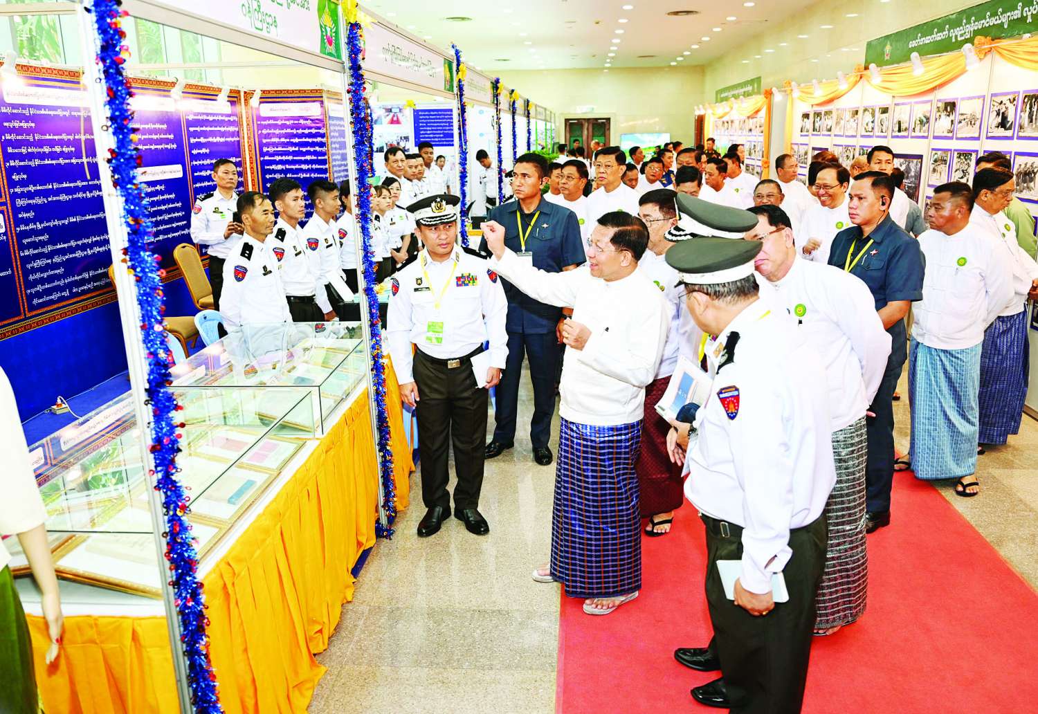ထို့နောက် နိုင်ငံတော်စီမံအုပ်ချုပ်ရေးကောင်စီဥက္ကဋ္ဌ နိုင်ငံတော်ဝန်ကြီးချုပ်နှင့် အဖွဲ့ဝင်များ၊ အခမ်းအနားတက်ရောက်လာကြသူများနှင့် ထူးချွန်လူငယ်မောင်မယ်များသည် ခင်းကျင်းပြသထားသည့် ပြခန်းများအတွင်း စိတ်ပါဝင်စားစွာဖြင့် လှည့်လည်ကြည့်ရှုကြသည်။