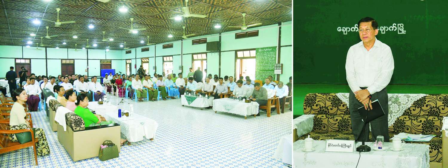 နိုင်ငံတော်စီမံအုပ်ချုပ်ရေးကောင်စီဥက္ကဋ္ဌ နိုင်ငံတော်ဝန်ကြီးချုပ် ဗိုလ်ချုပ်မှူးကြီးမင်းအောင်လှိုင် မကွေးတိုင်းဒေသကြီး၊ ချောက်မြို့ရှိ ခရိုင်အဆင့်ဌာနဆိုင်ရာများ၊ မြို့မိမြို့ဖများနှင့်တွေ့ဆုံ၍ ဒေသဖွံ့ဖြိုးတိုးတက်ရေးဆိုင်ရာများ ဆွေးနွေးပြောကြား ဒေသ၏အခြေခံကောင်းများကို အကျိုးရှိရှိအသုံးချပြီး ဒေသဖွံ့ဖြိုးတိုးတက်ရေးအတွက် ဝိုင်းဝန်းကြိုးပမ်းဆောင်ရွက်ကြရန်လို