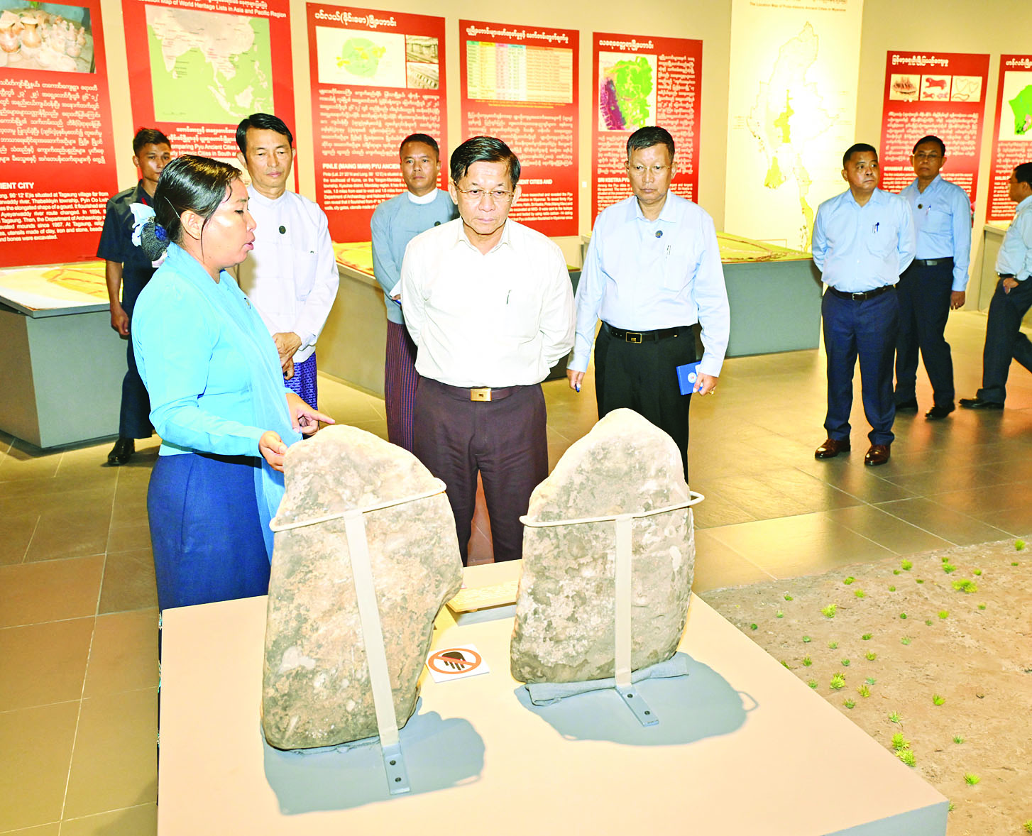ယင်းနောက် နိုင်ငံတော်စီမံအုပ်ချုပ်ရေးကောင်စီဥက္ကဋ္ဌ နိုင်ငံတော်ဝန်ကြီးချုပ်သည် အမျိုးသားပြတိုက်(နေပြည်တော်)အတွင်းပြခန်းများအား လှည့်လည်ကြည့်ရှုစစ်ဆေးပြီး တာဝန်ရှိသူများ၏ တင်ပြချက်များအပေါ် လိုအပ်သည်များလမ်းညွှန်မှာကြားခဲ့ကြောင်းသတင်းရရှိသည်။