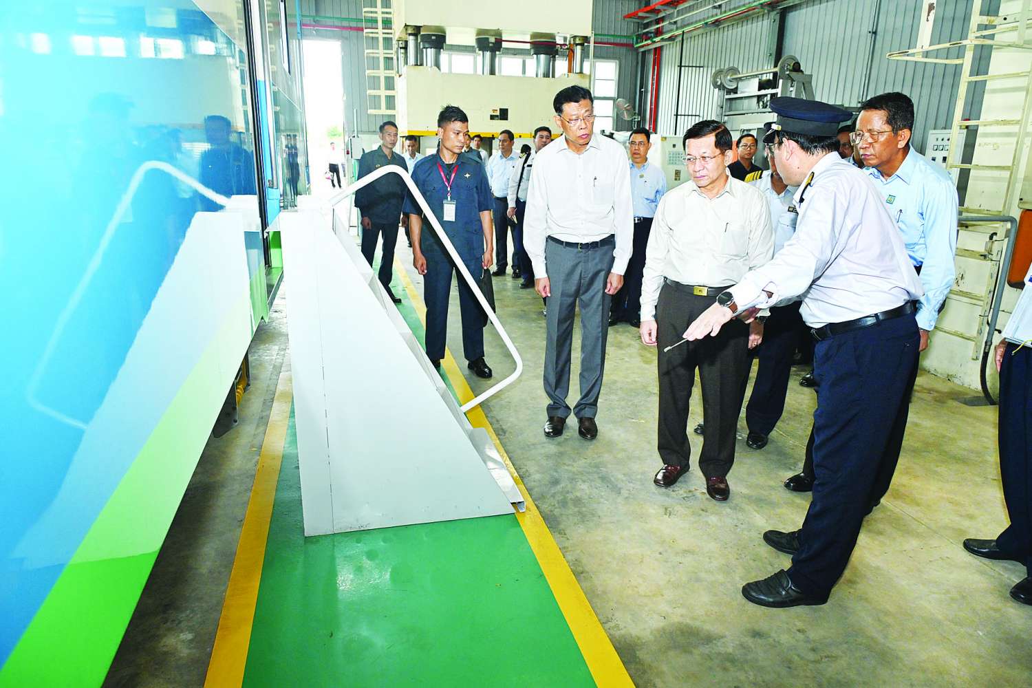 ထို့နောက် နိုင်ငံတော်စီမံအုပ်ချုပ်ရေးကောင်စီဥက္ကဋ္ဌ နိုင်ငံတော်ဝန်ကြီးချုပ်နှင့် အဖွဲ့ဝင်များသည် စက်ခေါင်းသစ်တပ်ဆင်ထုတ်လုပ်ရေးစက်ရုံ(နေပြည်တော်)အတွင်း ဂျပန်နိုင်ငံမှ ဝယ်ယူထားရှိသည့် ရန်ကုန်-မန္တလေးလမ်းပိုင်းတွင် ပြေးဆွဲမည့် DEMU တွဲဆိုင်းများနှင့် မြန်မာနိုင်ငံမှတည်ဆောက်ထားသည့် DEMU ရထားတွဲတို့အား လှည့်လည်ကြည့်ရှုစစ်ဆေးရာ တာဝန်ရှိသူများက လိုက်လံရှင်းလင်းတင်ပြမှုများအပေါ် နိုင်ငံတော်စီမံအုပ်ချုပ်ရေးကောင်စီဥက္ကဋ္ဌ နိုင်ငံတော်ဝန်ကြီးချုပ်က လိုအပ်သည်များလမ်းညွှန်မှာကြားသည်။