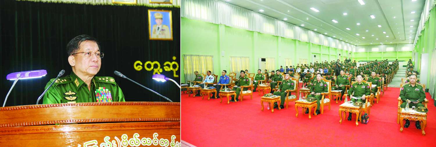 နိုင်ငံတော်စီမံအုပ်ချုပ်ရေးကောင်စီဥက္ကဋ္ဌ တပ်မတော်ကာကွယ်ရေးဦးစီးချုပ် ဗိုလ်ချုပ်မှူးကြီး မင်းအောင်လှိုင်သည် ယနေ့နံနက်ပိုင်းတွင် မှော်ဘီလေတပ်စခန်းဌာနချုပ်မှ အရာရှိ၊ စစ်သည်များ၊ တပ်မတော် (ကြည်း) ဗိုလ်သင်တန်းကျောင်း (မှော်ဘီ)မှ အမျိုးသမီးဗိုလ်လောင်းသင်တန်းသူများနှင့် အမျိုးသမီးအရာရှိခြေလျင်တပ်စုမှူးသင်တန်းမှ သင်တန်းသူများအား သက်ဆိုင်ရာခန်းမများ၌ သီးခြားစီတွေ့ဆုံအမှာစကား ပြောကြားသည်။