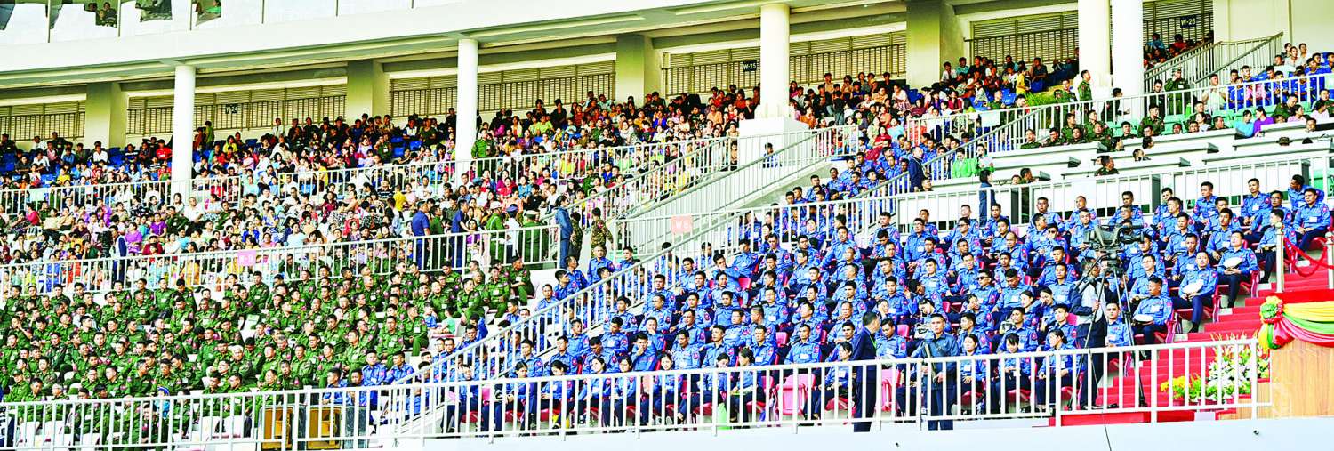 အဆိုပါအခမ်းအနားသို့ နိုင်ငံတော်စီမံအုပ်ချုပ်ရေးကောင်စီဥက္ကဋ္ဌ တပ်မတော်ကာကွယ်ရေးဦးစီးချုပ် ဗိုလ်ချုပ်မှူးကြီး မင်းအောင်လှိုင်နှင့်အတူ ဇနီး ဒေါ်ကြူကြူလှ၊ နိုင်ငံတော်စီမံအုပ်ချုပ်ရေးကောင်စီ ဒုတိယဥက္ကဋ္ဌ ဒုတိယတပ်မတော်ကာကွယ်ရေးဦးစီးချုပ် ကာကွယ်ရေးဦးစီးချုပ်(ကြည်း) ဒုတိယဗိုလ်ချုပ်မှူးကြီး စိုးဝင်းနှင့် ဇနီး ဒေါ်သန်းသန်းနွယ်၊ ကောင်စီဝင်ညှိနှိုင်းကွပ်ကဲရေးမှူး(ကြည်း၊ ရေ၊ လေ) ဗိုလ်ချုပ်ကြီး မောင်မောင်အေးနှင့် ဇနီး၊ ပြည်ထောင်စုအဆင့်ပုဂ္ဂိုလ်များ၊ ပြည်ထောင်စုဝန်ကြီးများနှင့် ဇနီးများ၊ ကာကွယ်ရေးဦးစီးချုပ်ရုံးမှ အဆင့်မြင့်တပ်မတော်အရာရှိကြီးများနှင့် ဇနီးများ၊ နေပြည်တော်တိုင်းစစ်ဌာနချုပ်တိုင်းမှူး၊ ကာကွယ်ရေးဦးစီးချုပ်ရုံး (ကြည်း၊ ရေ၊ လေ)ရုံး/ဌာနများမှ အရာရှိ၊ စစ်သည်၊ မိသားစုများ၊ နိုင်ငံတော်ကာကွယ်ရေးတက္ကသိုလ်မှ သင်တန်းသားအရာရှိကြီးများ၊ နေပြည်တော်တိုင်းစစ်ဌာနချုပ် ကွပ်ကဲမှုအောက် တပ်ရင်း/တပ်ဖွဲ့များမှ အရာရှိ၊ စစ်သည်၊ မိသားစုများ၊ တပ်မတော်ဘောလုံး အကယ်ဒမီကျောင်းမှ သင်တန်းသားများ၊ ဖိတ်ကြားထားသူများနှင့် ပြိုင်ပွဲဝင်အားကစားသမားများ တက်ရောက်ကြသည်။