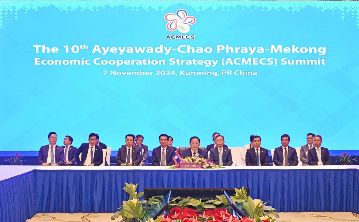 ယင်းနောက် နိုင်ငံတော်စီမံအုပ်ချုပ်ရေးကောင်စီဥက္ကဋ္ဌ နိုင်ငံတော်ဝန်ကြီးချုပ်က အမှာစကားပြောကြားရာတွင် ပထမအနေဖြင့် အက်ခ်မက် ပူးပေါင်းဆောင်ရွက်မှု၏ အလှည့်ကျဥက္ကဋ္ဌအဖြစ် (၄) နှစ်တာကာလကို အောင်မြင်စွာထမ်းဆောင်နိုင်ခြင်းအတွက် လာအိုနိုင်ငံဝန်ကြီးချုပ်ကို ချီးကျူးဂုဏ်ပြုလိုကြောင်း၊ တရုတ်ပြည်သူ့သမ္မတနိုင်ငံ၊ ကူမင်းမြို့တွင် လာအိုနိုင်ငံအနေဖြင့် ယခုကဲ့သို့ အရေးကြီးသည့် အစည်းအဝေးကို ဦးဆောင်ကျင်းပနိုင်ခြင်းနှင့် တရုတ်နိုင်ငံအနေဖြင့် မိမိအပါအဝင် မိမိတို့၏ကိုယ်စားလှယ်အဖွဲ့ကို နွေးထွေးသောဧည့်ဝတ်ပြုမှု၊ ကောင်းမွန်သော အစီအစဉ်များဖြင့် ကြိုဆိုပေးကြသည့်အတွက် ကျေးဇူးတင်ကြောင်း။