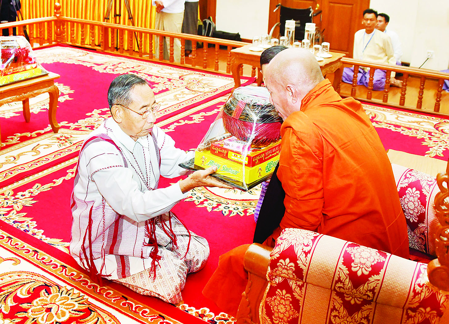 ယင်းနောက် နိုင်ငံတော်စီမံအုပ်ချုပ်ရေးကောင်စီဒုတိယဥက္ကဋ္ဌ ဒုတိယဝန်ကြီးချုပ်နှင့် ဇနီးတို့သည် နိုင်ငံတော်သံဃမဟာနာယကအဖွဲ့ အကျိုးတော်ဆောင် မန္တလေးမြို့၊ မစိုးရိမ်တိုက်သစ် မဟာနာယက၊ ဓမ္မသမိဒ္ဓိကျောင်း ဆရာတော်ကြီးထံ ကထိန်သင်္ကန်းနှင့် လှူဖွယ်ပစ္စည်းများကို ဆက်ကပ်လှူဒါန်းသည်။