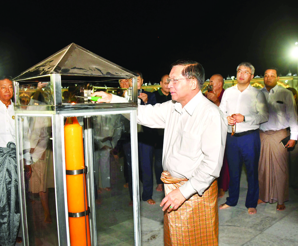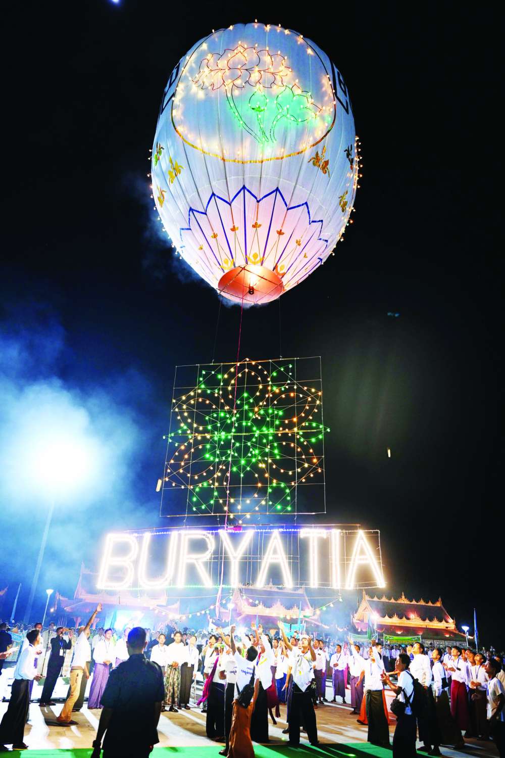ထို့နောက် နိုင်ငံတော်စီမံအုပ်ချုပ်ရေးကောင်စီဥက္ကဋ္ဌ နိုင်ငံတော်ဝန်ကြီးချုပ်နှင့် ရုရှားဖက်ဒရေးရှင်းနိုင်ငံ၊ ဘူရားတီးရားပြည်နယ်အကြီးအကဲ၊ ဘူရားတီးရားပြည်နယ်အစိုးရဥက္ကဋ္ဌနှင့် ချစ်ကြည်ရေးကိုယ်စားလှယ်အဖွဲ့တို့က စိန်နားပန်မီးပုံးပျံလွှတ်တင်မှုနှင့် ညမီးကျည် (ညမီးကြီး) မီးပုံးပျံများ လွှတ်တင်ပူဇော်ယှဉ်ပြိုင်နေမှုများကို ကြည့်ရှုအားပေးကြသည်။