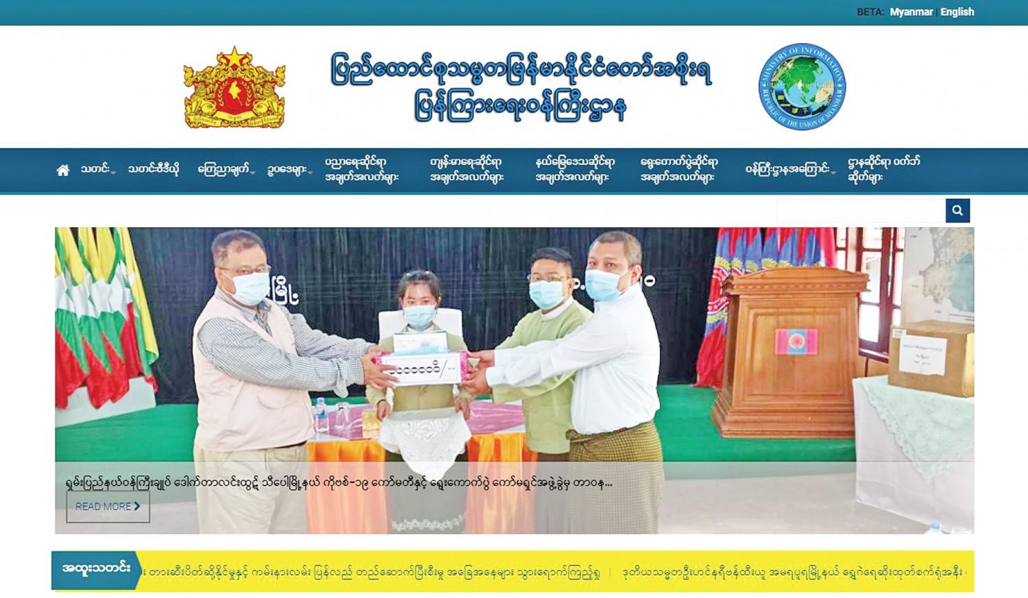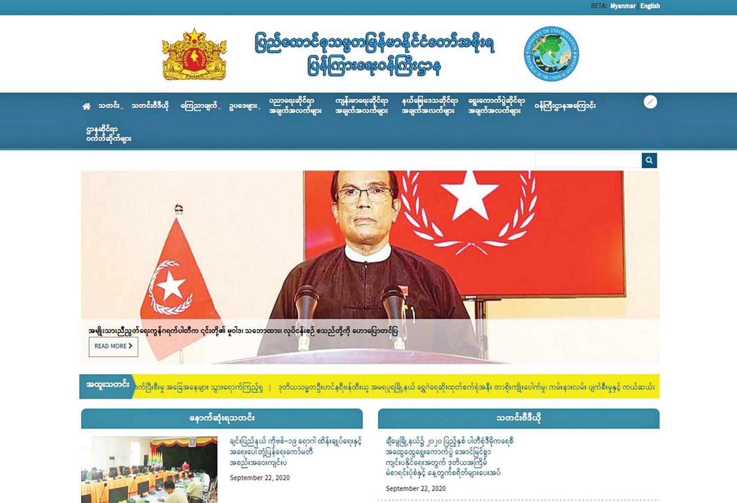 ပြန်ကြားရေးဝန်ကြီးဌာနရဲ့ ဝက်ဘ်ဆိုက်ကို ၂၀၁၂ ခုနှစ် ဇွန်လ ၁ ရက်နေ့မှာ စတင်ခဲ့ပြီး ၂၀၁၄ ခုနှစ် မတ် လ ၃၁ ရက်နေ့မှာ ဝက်ဘ်ပေါ်တယ်အဖြစ် အဆင့်မြှင့်တင် ထားခဲ့ရာ ယခုနှစ် ဩဂုတ်လ ၄ ရက်နေ့မှာတော့ ဝက်ဘ်ဆိုက် Drupal 8 ဗားရှင်းအနေနဲ့ အဆင့်မြှင့်တင် ထားတာကြောင့် အသွင်သဏ္ဌာန်ရော၊ တင်ဆက်မှုကိုရော သိသိသာသာပြောင်းလဲလာတာ တွေ့ရပါတယ်။ ဒါကြောင့် အသုံးပြုသူတွေက မူလဝက်ဘ်ဆိုက်လိပ်စာအတိုင်း ရှာဖွေနိုင်သလို ဒီဇိုင်းပိုင်း အပြောင်းအလဲရှိပေမယ့် အသုံးပြုသူတွေအဖို့တော့ သုံးရတာအခက်အခဲမရှိတာကို တွေ့ရပါတယ်။