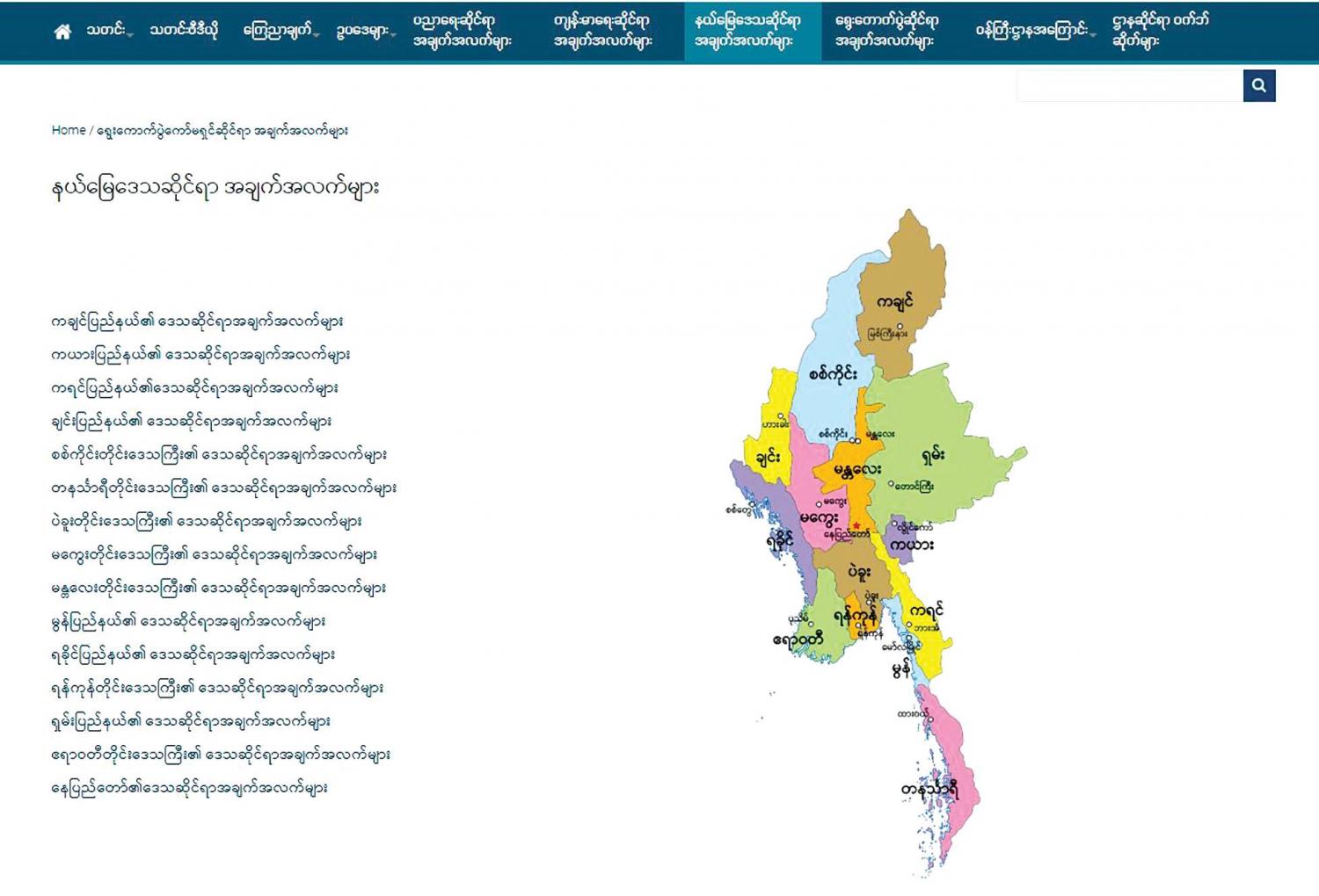 ဝက်ဘ်ဆိုက်ကို လေ့လာကြည့်တဲ့အခါ နိုင်ငံတော် အစိုးရရဲ့ သတင်းထုတ်ပြန်ချက်၊ နိုင်ငံတော်အကြီးအကဲ တွေရဲ့ လှုပ်ရှားဆောင်ရွက်မှု၊ မိန့်ခွန်းတွေနဲ့ အများပြည်သူ သိသင့်သိထိုက်တဲ့ အချက်အလက်တွေ အားလုံး၊ လတ်တလော သတင်းထုတ်ပြန်ထားချက်တွေနဲ့ ဒေသ ဆိုင်ရာသတင်းတွေကို အဓိကထား လွှင့်တင်နေတာကို တွေ့မြင်ရပါတယ်။ ဒါကြောင့် လတ်တလောအရေးပေါ် ဖြစ်ပေါ်နေတဲ့ ကိုဗစ်-၁၉ သတင်းတွေ၊ ရွေးကောက်ပွဲဆိုင်ရာ အချက်အလက်တွေ၊ ပညာရေးဆိုင်ရာအချက်အလက် တွေကို ရယူနိုင်ဖို့အတွက် ကူညီနိုင်တဲ့ ဝက်ဘ်ဆိုက်တစ်ခု လည်း ဖြစ်ပါတယ်။
