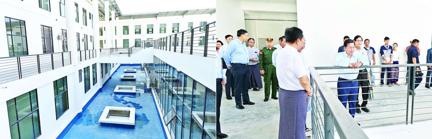 ထို့နောက် နိုင်ငံတော်စီမံအုပ်ချုပ်ရေးကောင်စီဥက္ကဋ္ဌ နိုင်ငံတော်ဝန်ကြီးချုပ်သည် ပင်မသုံးထပ်စာသင်ဆောင်အသစ် တည်ဆောက်ပြီးစီးမှုအခြေအနေများကို လိုက်လံကြည့်ရှုစစ်ဆေးခဲ့ပြီး တာဝန်ရှိသူများ၏ တင်ပြချက်များအပေါ် လိုအပ်သည်များမှာကြားခဲ့ကြောင်း သတင်းရရှိသည်။