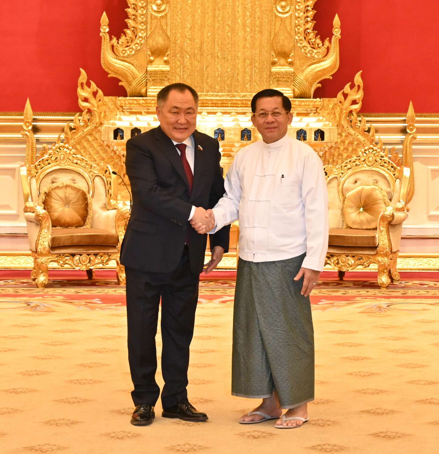 နိုင်ငံတော်စီမံအုပ်ချုပ်ရေးကောင်စီဥက္ကဋ္ဌ နိုင်ငံတော်ဝန်ကြီးချုပ် ဗိုလ်ချုပ်မှူးကြီး မင်းအောင်လှိုင်ထံသို့ ရုရှားဖက်ဒရေးရှင်းနိုင်ငံ၊ ဒူးမားလွှတ်တော် ဒုတိယဥက္ကဋ္ဌ H. E. Mr. Sholban Kara-Ool ဦးဆောင်သည့်ကိုယ်စားလှယ်အဖွဲ့က ယနေ့နံနက်ပိုင်းတွင် နေပြည်တော်ရှိ နိုင်ငံတော်စီမံအုပ်ချုပ်ရေးကောင်စီဥက္ကဋ္ဌရုံး၊ သံတမန်ဆောင်ဧည့်ခန်းမ၌ လာရောက်ဂါရဝပြုတွေ့ဆုံသည်။