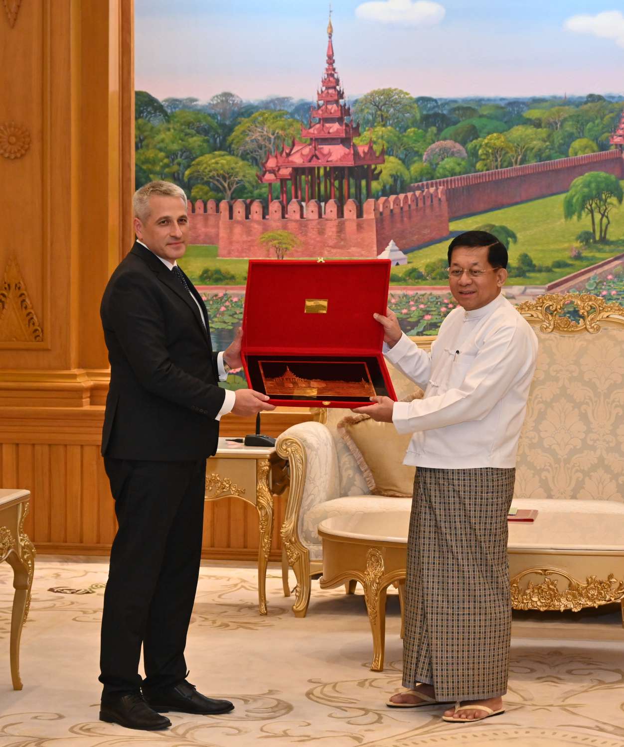 နိုင်ငံတော်စီမံအုပ်ချုပ်ရေးကောင်စီဥက္ကဋ္ဌ နိုင်ငံတော်ဝန်ကြီးချုပ် ဗိုလ်ချုပ်မှူးကြီးမင်းအောင်လှိုင် ဟနွိုင်းမြို့အခြေစိုက် မြန်မာနိုင်ငံဆိုင်ရာ ဘယ်လာရုစ်နိုင်ငံသံအမတ်ကြီး H.E. Mr. Uladzimir Baravikou အား ယနေ့နံနတ်ပိုင်းတွင် နေပြည်တော်ရှိ နိုင်ငံတော်စီမံအုပ်ချုပ်ရေးကောင်စီဥက္ကဋ္ဌရုံး၊ ဧည့်ခန်းမ၌ လက်ခံတွေ့ဆုံသည်။