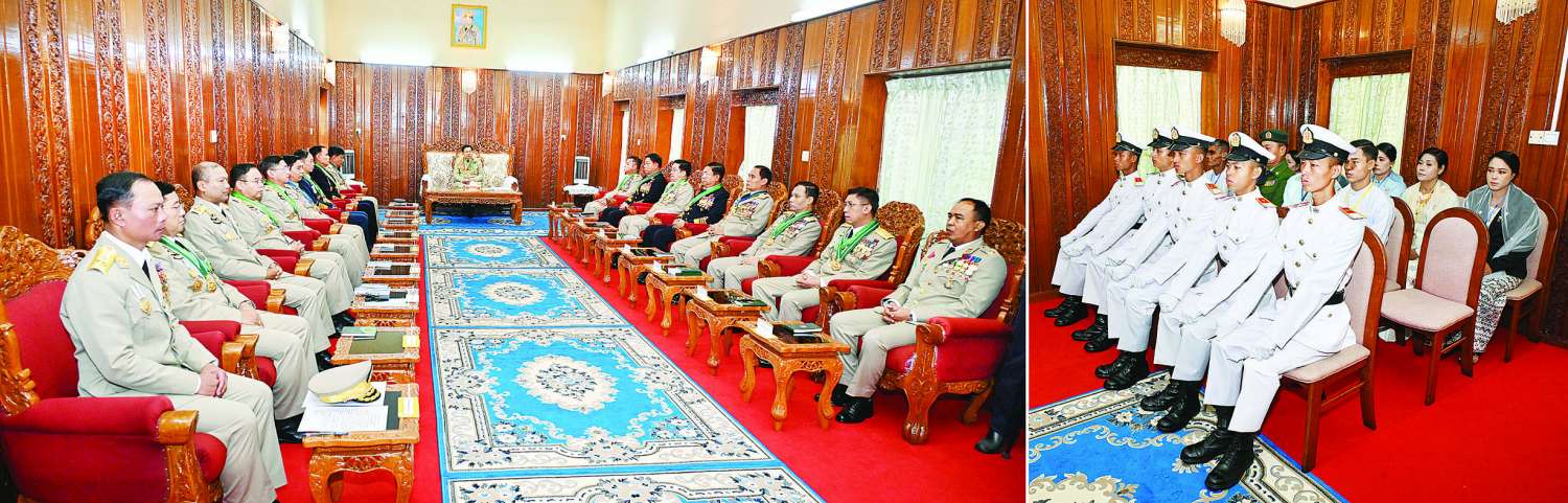 စစ်ရေးပြအခမ်းအနားအပြီးတွင် နိုင်ငံတော်စီမံအုပ်ချုပ်ရေးကောင်စီဥက္ကဋ္ဌ တပ်မတော် ကာကွယ်ရေးဦးစီးချုပ် ဗိုလ်ချုပ်မှူးကြီး သတိုးမဟာသရေစည်သူ သတိုးသီရိသုဓမ္မ မင်းအောင်လှိုင်သည် စစ်တက္ကသိုလ်ကျောင်းဌာနချုပ်၊ ဧည့်ခန်းမ၌ ထူးချွန်ဆုရရှိကြသည့် ဗိုလ်လောင်း ၅ ဦးနှင့် ၎င်းတို့၏ မိဘဆွေမျိုးများကို တွေ့ဆုံ၍ ဂုဏ်ပြုအမှာစကားပြောကြားသည်။