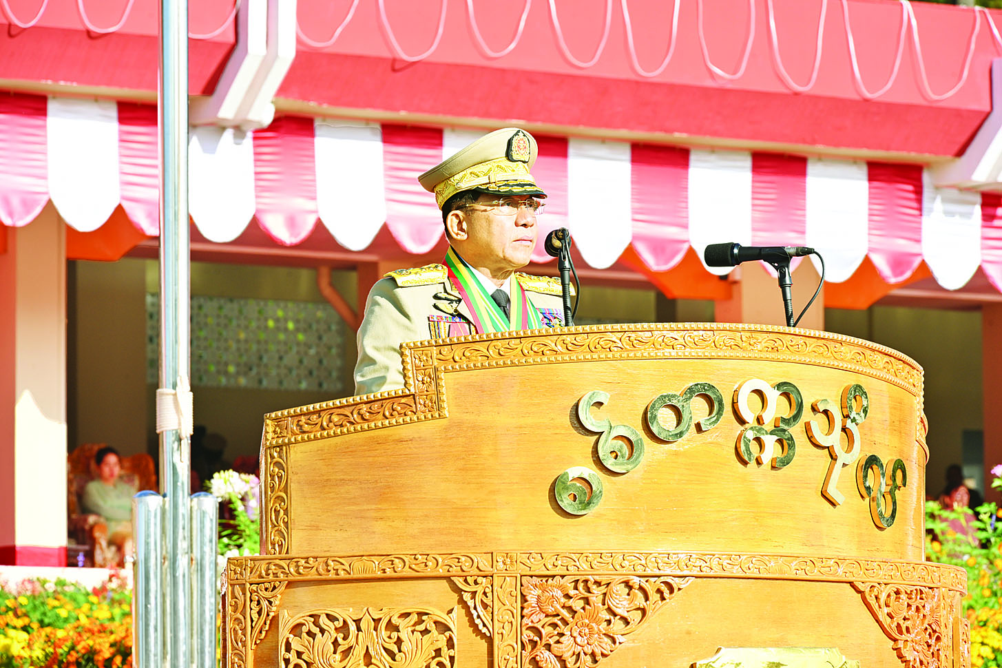 ဒို့တပ်မတော်ဟာ ပြည်သူတွေနဲ့ပူးပေါင်းပြီး ခေတ်အဆက်ဆက်မှာ ပြည်တွင်းပြည်ပအန္တရာယ်တွေကို ရင်ဆိုင်ကျော်ဖြတ်နိုင်ခဲ့ကြသလို နိုင်ငံတော်မှာ ကြုံတွေ့လာရမယ့် ဘေးအန္တရာယ်တွေကို နိုင်ငံတော်အစိုးရ၊ တပ်မတော်နဲ့ ပြည်သူလူထုစည်းလုံးညီညွတ်မှုအားနဲ့ ရင်ဆိုင်ကျော်ဖြတ်နိုင်စွမ်းရှိရမှာဖြစ်တယ်။ ယနေ့ကာလမှာ ပြည်တွင်းပြည်ပအဖျက်သမားများဟာ ဆိုရှယ်မီဒီယာကို လက်နက်သဖွယ်အသုံးပြုပြီး အစိုးရနဲ့ပြည်သူ၊ ပြည်သူနဲ့တပ်မတော် သွေးကွဲအောင်၊ စည်းလုံးညီညွတ်မှုပြိုကွဲအောင် ထိုးနှက်တိုက်ခိုက်လျက်ရှိတယ်။ အထူးသဖြင့် နိုင်ငံတော်တည်တံ့ခိုင်မြဲရေးနဲ့ တည်ငြိမ်အေးချမ်းရေးအတွက် နိုင်ငံတော်ကာကွယ်ရေး တာဝန်ထမ်းဆောင်နေတဲ့ ဒို့တပ်မတော်သား အချင်းချင်းစိတ်ဝမ်းကွဲအောင် သတင်းအတု၊ သတင်းအမှားတွေနဲ့ ထိုးနှက်တိုက်ခိုက်မှုတွေကို လုပ်ဆောင်နေတာ မြင်တွေ့ကြရမှာဖြစ်တယ်။ အဲဒီလိုတပ်မတော်ဖြိုခွဲရေးအတွက် ရည်ရွယ်ချက်ရှိရှိနဲ့ လုပ်ဆောင်နေတဲ့ သတင်းအတု၊ သတင်းအမှားတွေကို နားမယောင်မိဖို့လိုသလို ရဲဘော်တို့အနေနဲ့ တာဝန်ကျရာတပ်အသီးသီးကို ရောက်ရှိသွားချိန်မှာ တပ်မတော်သားနဲ့ မိသားစုဝင်တွေ သတင်းအတု၊ သတင်းအမှားများကြောင့် ယုံကြည်ချက်၊ ခံယူချက်တွေ မယိမ်းယိုင်သွားစေဖို့နဲ့ တပ်တွင်းစည်းလုံးညီညွတ်ရေး ခိုင်မာအားကောင်းစေဖို့အတွက် စည်းရုံးလုပ်ဆောင်သွားကြဖို့ လိုအပ်တယ်။ တပ်တွင်းစည်း လုံးညီညွတ်မှုရှိစေရေးအတွက် အထက်ကပေးအပ်တဲ့ အမိန့်နဲ့တာဝန်တွေကို ကျေပွန်စွာထမ်းဆောင်ဖို့ လိုသလိုလက်အောက်ကို ထိတွေ့မှုများများနဲ့ဦးဆောင်ပြီး နေ့စဉ်လုပ်ဆောင်ရမယ့် တပ်တည်ဆောက်ရေးလုပ်ငန်းကြီး(၄)ရပ်ကို အောင်မြင်စွာလုပ်ဆောင်သွားကြဖို့ အလေးထားမှာကြားလိုတယ်။