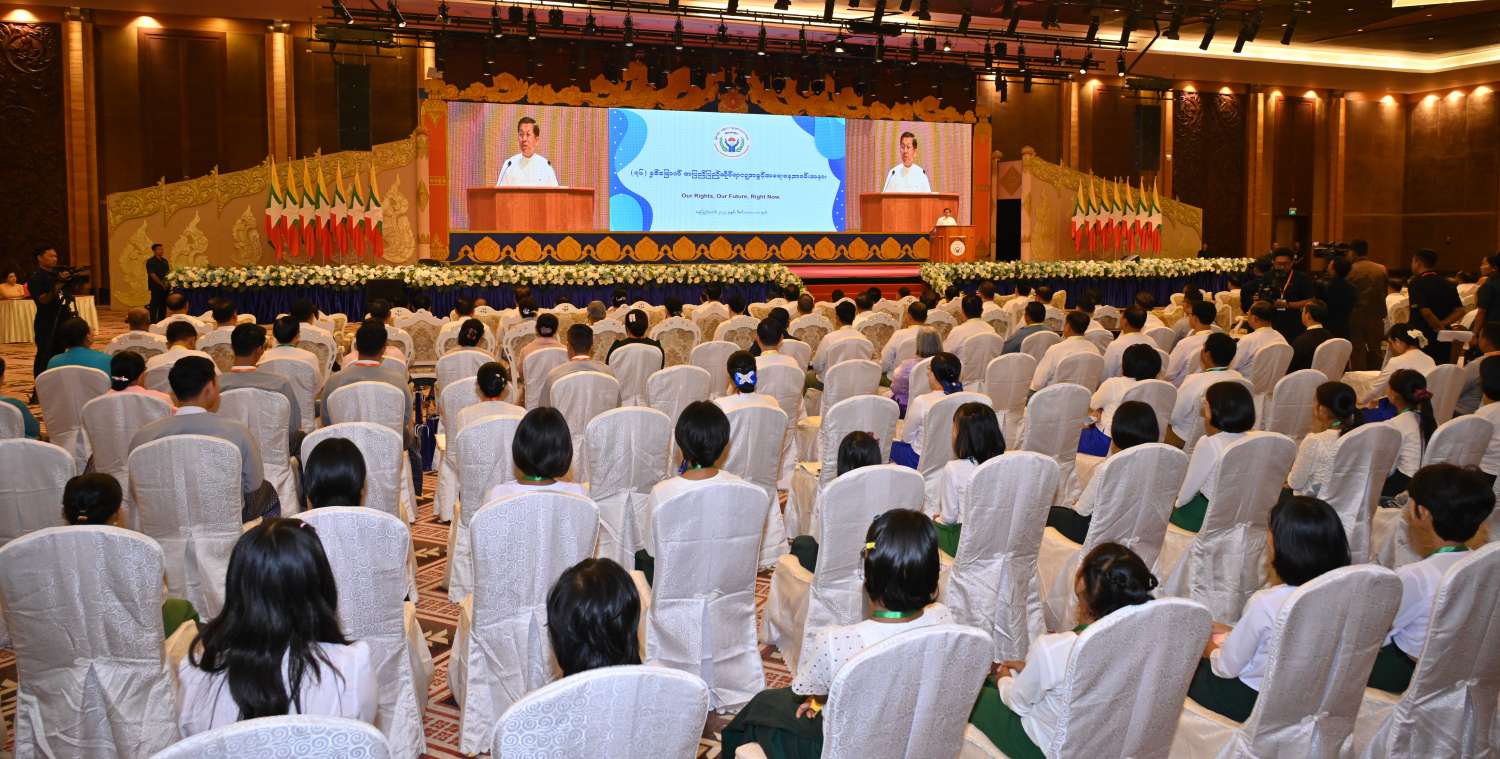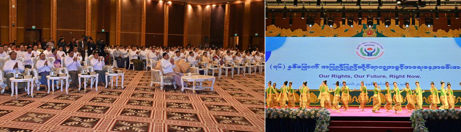 (၇၆) နှစ်မြောက် အပြည်ပြည်ဆိုင်ရာ လူ့အခွင့်အရေးနေ့အခမ်းအနားကို ယနေ့နံနက်ပိုင်းတွင် နေပြည်တော်ရှိ မြန်မာအပြည်ပြည်ဆိုင်ရာ ကွန်ဗင်းရှင်းဗဟိုဌာန-၁ ၌ ကျင်းပပြုလုပ်ရာ နိုင်ငံတော်စီမံအုပ်ချုပ်ရေးကောင်စီဥက္ကဋ္ဌ နိုင်ငံတော်ဝန်ကြီးချုပ် ဗိုလ်ချုပ်မှူးကြီးမင်းအောင်လှိုင် တက်ရောက်အမှာစကား ပြောကြားသည်။