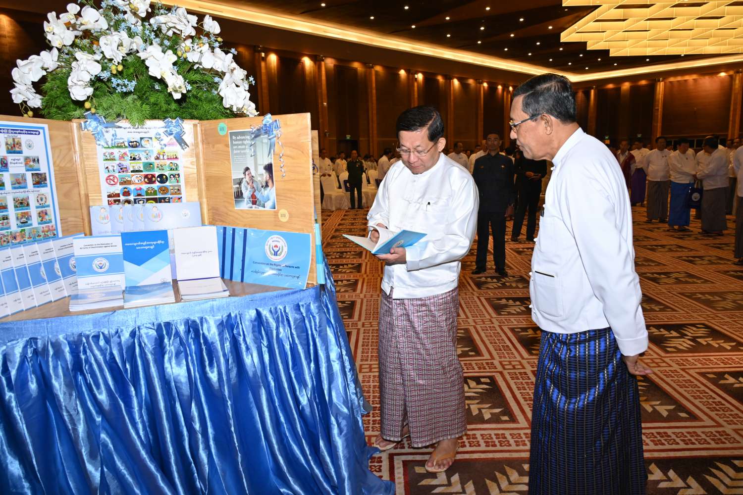 ထို့နောက် နိုင်ငံတော်စီမံအုပ်ချုပ်ရေးကောင်စီဥက္ကဋ္ဌ နိုင်ငံတော်ဝန်ကြီးချုပ်နှင့် အခမ်းအနားတက်ရောက်လာကြသူများသည် မြန်မာနိုင်ငံအမျိုးသားလူ့အခွင့်အရေး ကော်မရှင်၏ လူ့အခွင့်အရေးမြှင့်တင်ရေးနှင့် ပညာပေးရေးလုပ်ငန်းများ အကောင်အထည်ဖော်ဆောင်ရွက်မှု မှတ်တမ်းဓာတ်ပုံများကို လှည့်လည်ကြည့်ရှုခဲ့ကြကြောင်း သတင်းရရှိသည်။