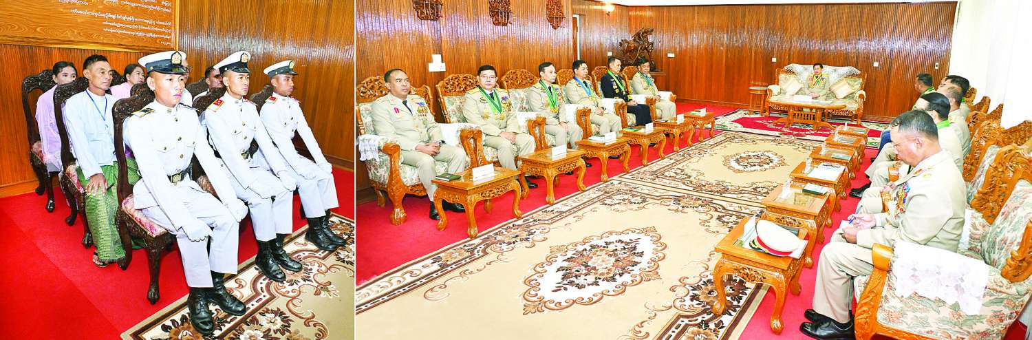 စစ်ရေးပြအခမ်းအနားအပြီးတွင် နိုင်ငံတော်စီမံအုပ်ချုပ်ရေးကောင်စီဥက္ကဋ္ဌ တပ်မတော်ကာကွယ်ရေးဦးစီးချုပ် ဗိုလ်ချုပ်မှူးကြီး သတိုးမဟာသရေစည်သူ သတိုးသီရိသုဓမ္မ မင်းအောင်လှိုင်သည် တပ်မတော်နည်းပညာတက္ကသိုလ်ကျောင်းဌာနချုပ် ဧည့်ခန်းမ၌ ထူးချွန်ဆုရရှိကြသည့် ဗိုလ်လောင်းများနှင့် ၎င်းတို့၏ မိဘဆွေမျိုးများကို တွေ့ဆုံ၍ ဂုဏ်ပြုအမှာစကားပြောကြားသည်။
