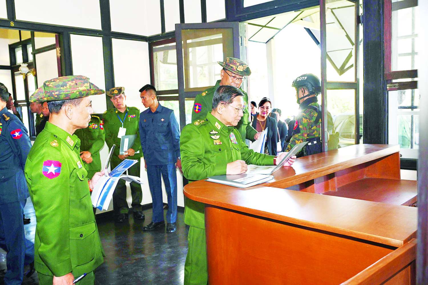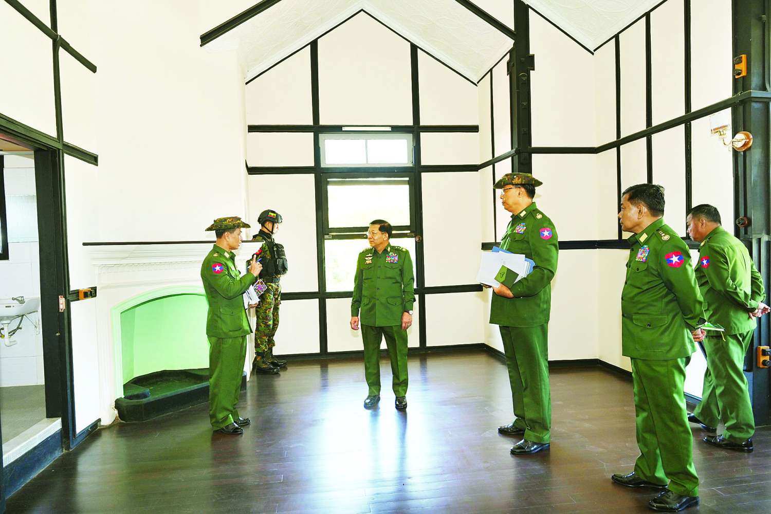 ထို့နောက် နိုင်ငံတော်စီမံအုပ်ချုပ်ရေးကောင်စီဥက္ကဋ္ဌ တပ်မတော်ကာကွယ်ရေးဦးစီးချုပ်နှင့် ဇနီး၊ အဖွဲ့ဝင်များသည် ရှေးဟောင်းတပ်မတော်ဧည့်ရိပ်သာများဖြစ်သည့် သဇင်မြိုင်၊ ချယ်ရီမြိုင်နှင့် ယုဇနမြိုင်တို့သို့ ရောက်ရှိကြပြီး ထိန်းသိမ်းထားရှိမှုအခြေအနေများကို ကြည့်ရှုစစ်ဆေးရာ တာဝန်ရှိသူများက လိုက်လံရှင်းလင်းတင်ပြကြသည်။