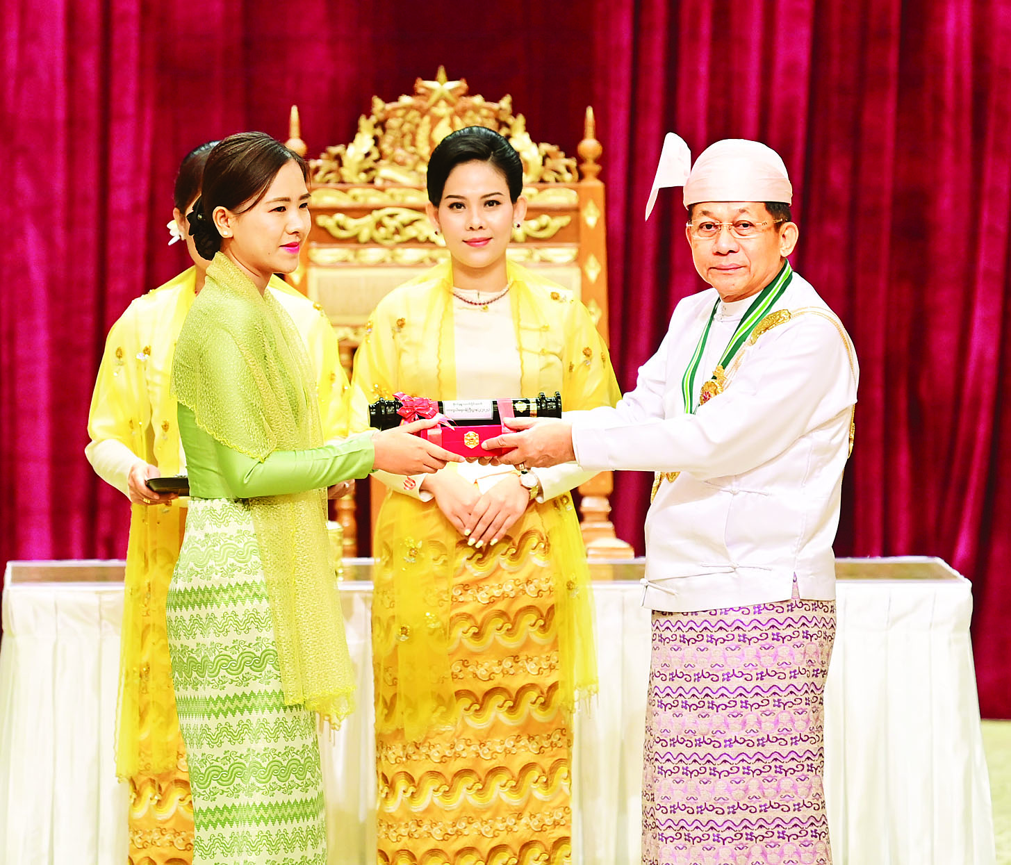 နိုင်ငံတော်စီမံအုပ်ချုပ်ရေးကောင်စီဥက္ကဋ္ဌ နိုင်ငံတော်ဝန်ကြီးချုပ် ဗိုလ်ချုပ်မှူးကြီး သတိုးမဟာသရေစည်သူ သတိုးသီရိသုဓမ္မ မင်းအောင်လှိုင် (၇၇)နှစ်မြောက်လွတ်လပ်ရေးနေ့အထိမ်းအမှတ် ဂုဏ်ထူးဆောင်ဘွဲ့များ ချီးမြှင့်အပ်နှင်းခြင်းအခမ်းအနားသို့ တက်ရောက်ချီးမြှင့်