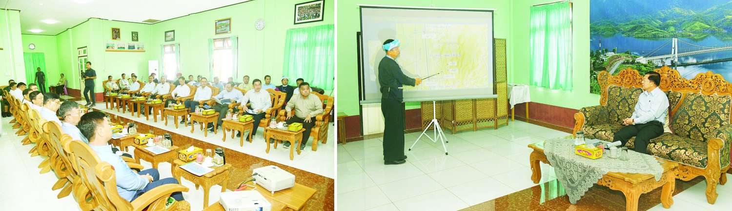 နိုင်ငံတော်စီမံအုပ်ချုပ်ရေးကောင်စီဥက္ကဋ္ဌ နိုင်ငံတော်ဝန်ကြီးချုပ် ဗိုလ်ချုပ်မှူးကြီးမင်းအောင်လှိုင် ရှမ်းပြည်နယ်(တောင်ပိုင်း)နှင့် ပအိုဝ်းကိုယ်ပိုင်အုပ်ချုပ်ခွင့်ရဒေသတို့ရှိ ပြည်နယ်၊ ခရိုင်၊ မြို့နယ်အဆင့် ဌာနဆိုင်ရာဝန်ထမ်းများနှင့်တွေ့ဆုံ၊ ငလျင်သဘာဝဘေးဒဏ်ဆိုင်ရာများနှင့် ဒေသဖွံ့ဖြိုးတိုးတက်ရေးဆိုင်ရာများအား ဆွေးနွေးမှာကြား၊ ထိခိုက်ပျက်စီးမှုများကြည့်ရှုစစ်ဆေး