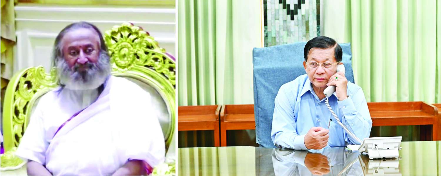 မြန်မာနိုင်ငံတွင် ပြင်းထန်စွာငလျင်လှုပ်ခတ်ခဲ့မှုနှင့်ပတ်သက်၍ နိုင်ငံတော်စီမံအုပ်ချုပ်ရေးကောင်စီဥက္ကဋ္ဌ နိုင်ငံတော်ဝန်ကြီးချုပ် ဗိုလ်ချုပ်မှူးကြီး မင်းအောင်လှိုင် အိန္ဒိယနိုင်ငံမှ လူသားချင်းစာနာထောက်ထားမှုခေါင်းဆောင်နှင့် ငြိမ်းချမ်းရေးသံတမန် Gurudev Sri Sri Ravi Shankar နှင့် ဖုန်းဖြင့်ဆက်သွယ်ပြောကြား