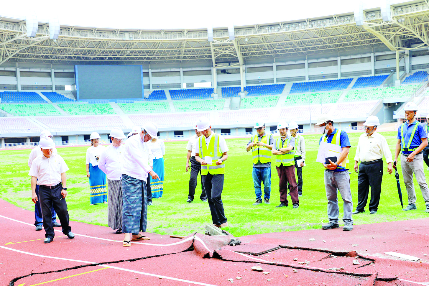 ပြည်ထောင်စုဝန်ကြီး Jeng Phang နော်တောင် ဝဏ္ဏသိဒ္ဓိအားကစားကွင်းအတွင်း ထိခိုက်ပျက်စီးဆုံးရှုံးခဲ့သည့် အဆောက်အအုံများ၊ Synthetic ပြေးလမ်းနှင့် ယာဉ်ပတ်လမ်းများ လိုက်လံကြည့်ရှုစစ်ဆေး