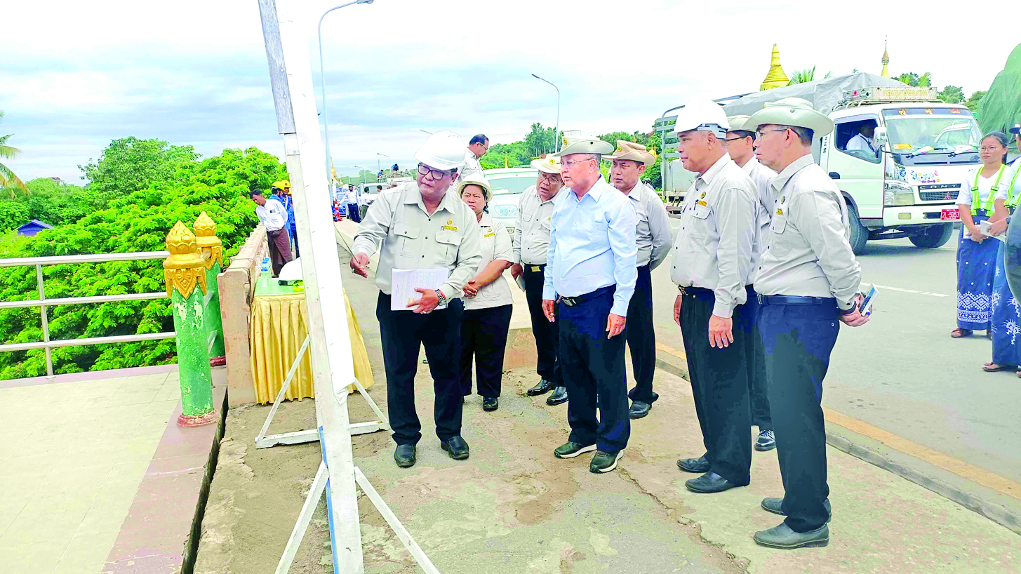 ယင်းနောက် ဧရာဝတီတံတား (ရတနာပုံ) စစ်ကိုင်းဘက်ခြမ်း၌ တံတားကြံ့ခိုင်မှုအတွက် တိုင်းတာ စစ်ဆေးနေမှုအခြေအနေများနှင့် တံတားတစ်လျှောက် ထိခိုက်ပျက်စီးနေမှုအခြေအနေများကို ကြည့်ရှုစစ်ဆေးသည်။